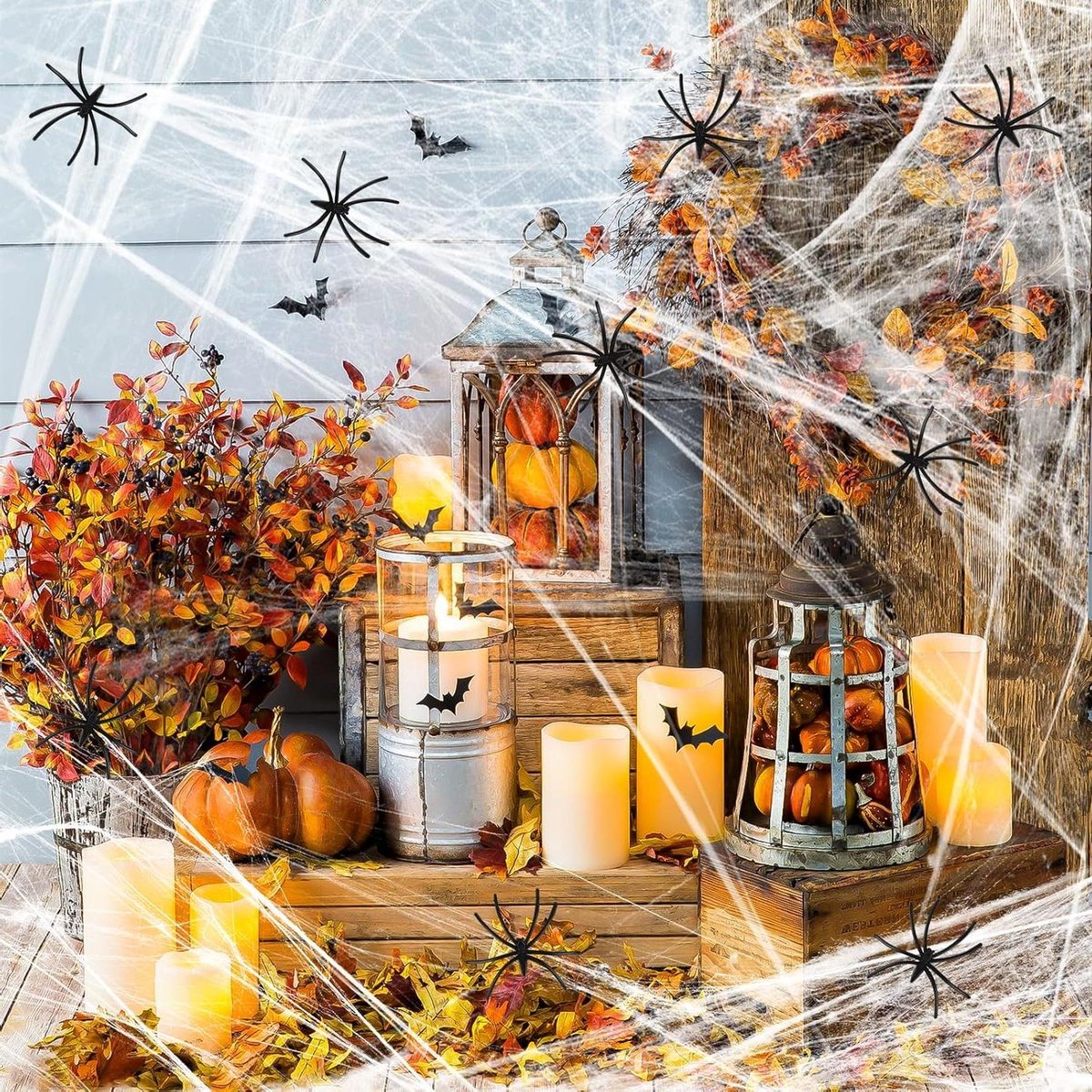 “`html Halloween-decoraties: spinnenwebdecoratie is geweldig voor je Halloween-feestdecoratie. Deze spinnenwebben kunnen niet alleen je spookhuizen, woonkamers en kasten versieren, maar ook worden gebruikt voor het decoreren van muren, ramen, bomen, deuren en alle binnen- en buitenruimtes. Deze verbazingwekkende spinnenwebdecoratie zal je gasten en de mensen die snoep verzamelen verrassen.