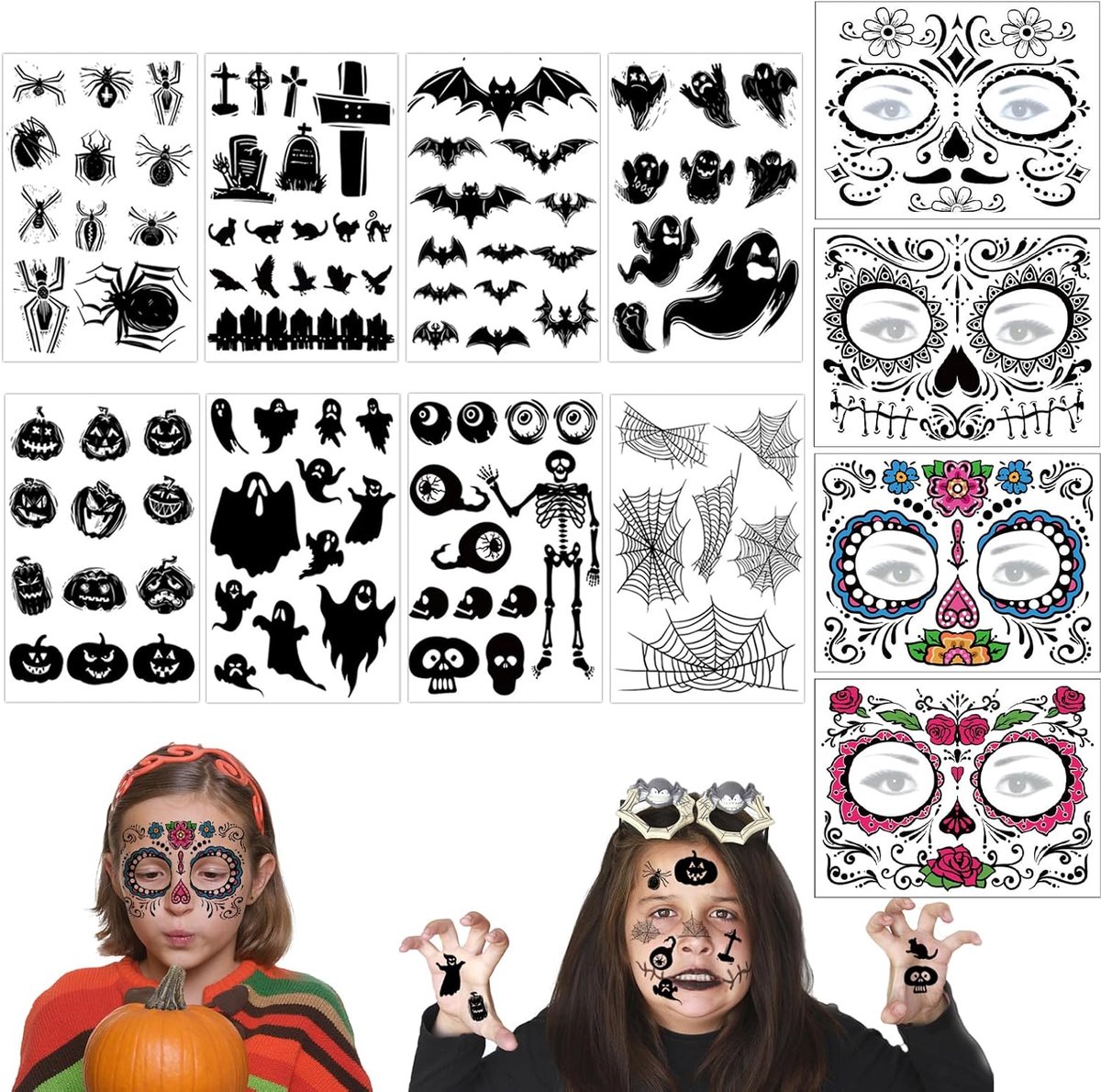 Tijdelijke Halloween Tattoo Stickers – 12 Vellen Kindertatoeages – Waterproof Terror Stickers – Gezichtstickers voor Cosplay
