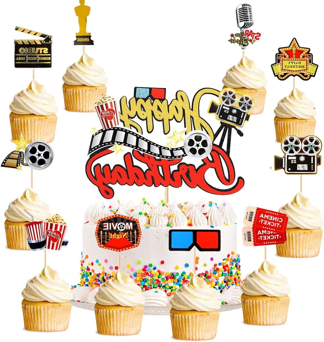 Allecta – Taarttopper voor filmavond thema feest, 11 stuks, verjaardag & Hollywood decoratie