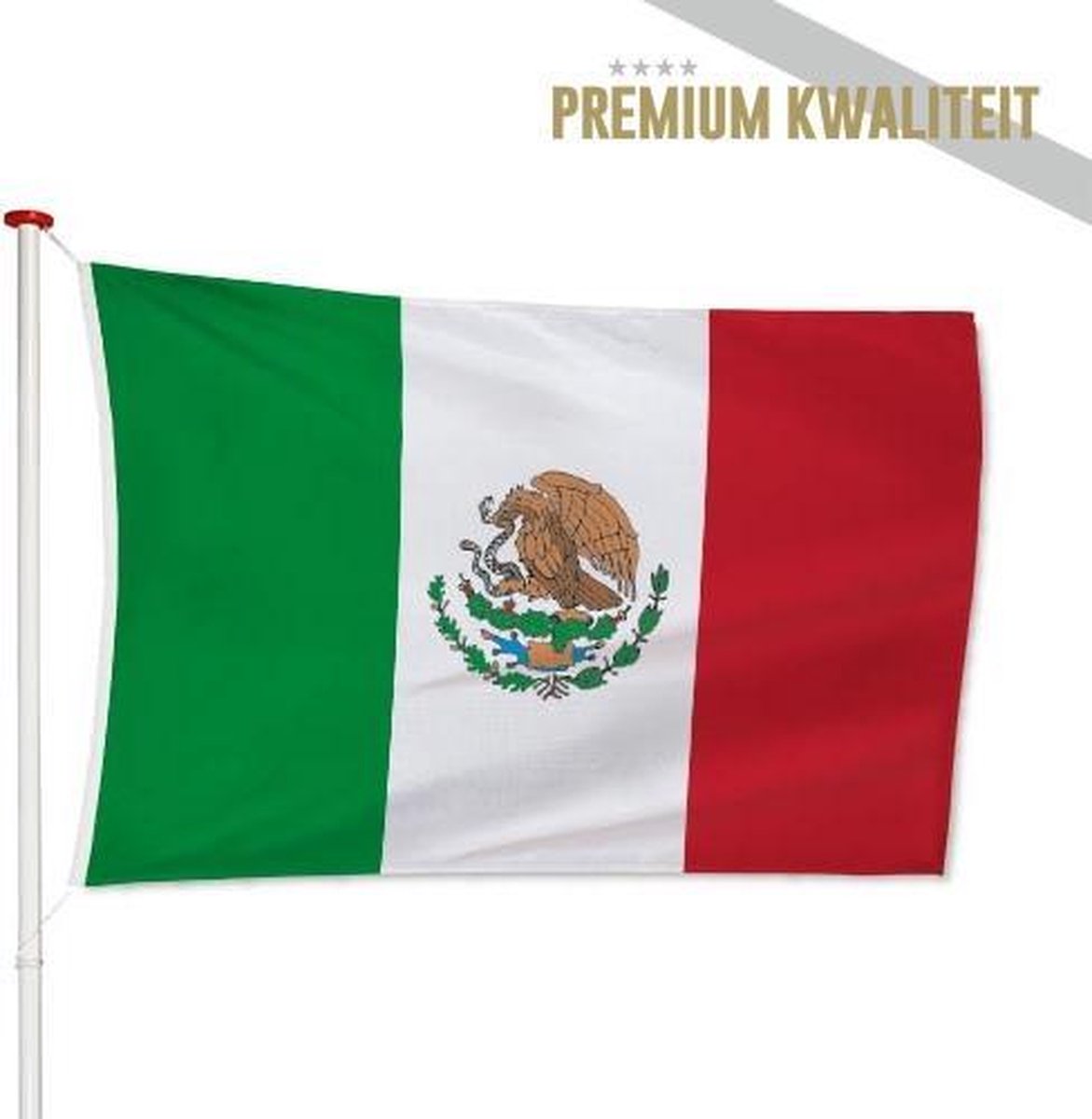 De vlag van Mexico is gemaakt van drie draads geweven vlaggendoek, de hoogste kwaliteit doeksoort dat in Nederland verkrijgbaar is. De vlag is afgewerkt met kopband en 2 clips aan de linkerzijde van de vlag.