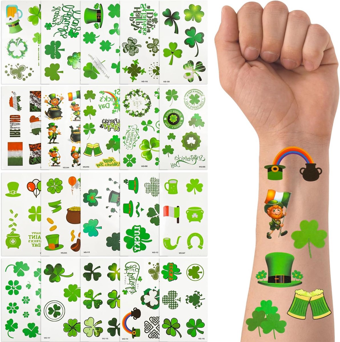 Brede Toepassingen Onze St. Patrick’s Day tijdelijke tattoos zijn niet alleen schattig, maar ook vol met elementen die de feeststemming verhogen. Ze zijn perfect voor alle vieringen rondom St. Patrick’s Day, waardoor jij en je vrienden en familie er nog gelukkiger en aantrekkelijker uitzien!