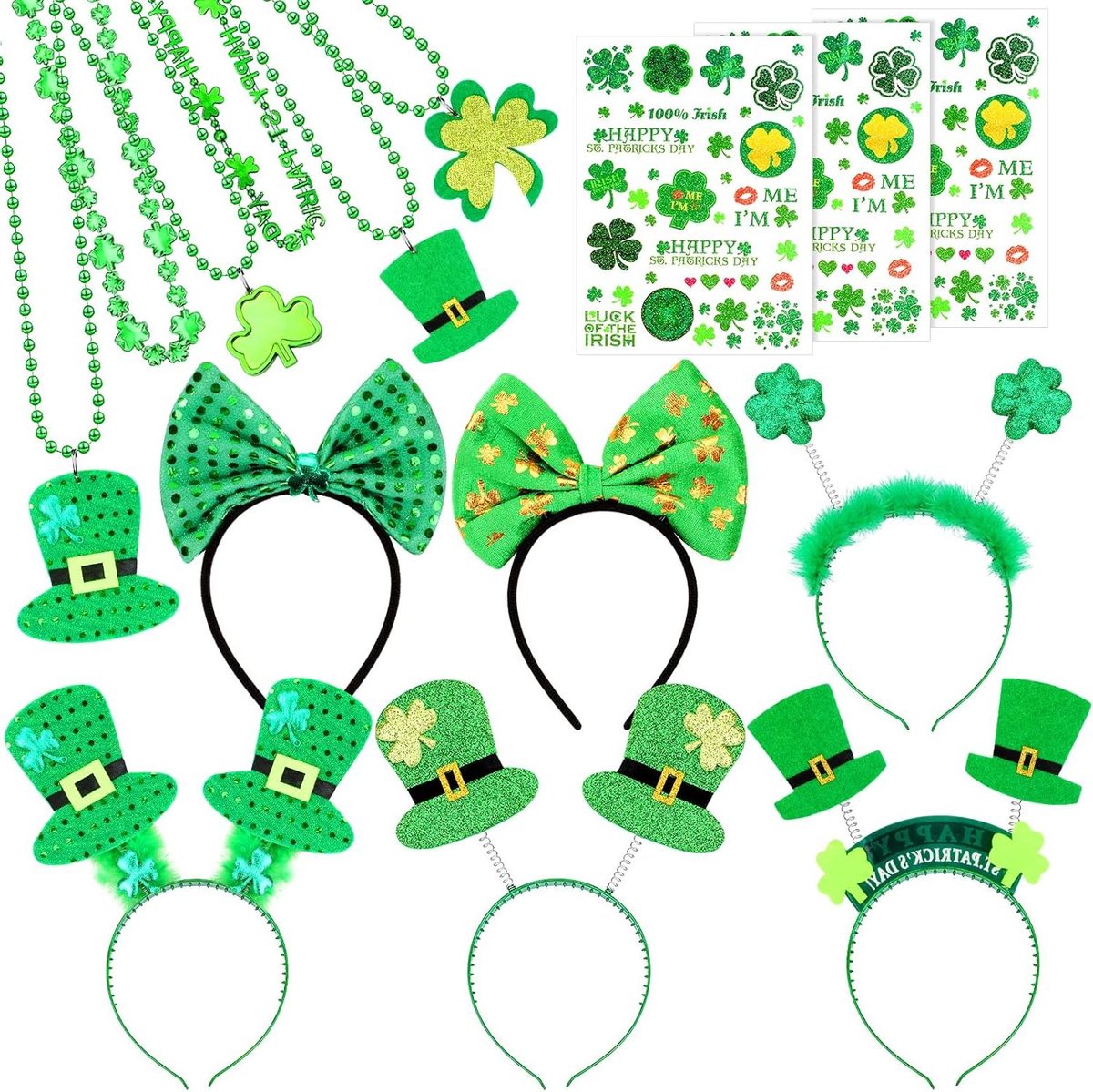 Cosensi – St. Patrick’s Day Party Favor Set met kettingen, hoofdbanden, en tijdelijke tattoos voor Ierse feestdecoratie. Perfecte accessoire voor volwassenen en kinderen.