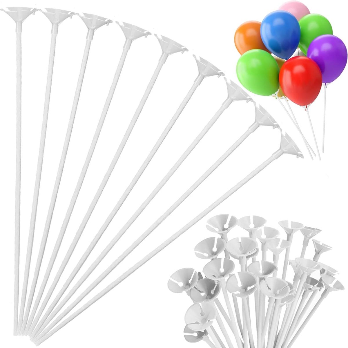 Met dit pakket van 100 herbruikbare ballonsticks en 100 balloncups heb je alles wat je nodig hebt om prachtige feestdecoraties te creëren.