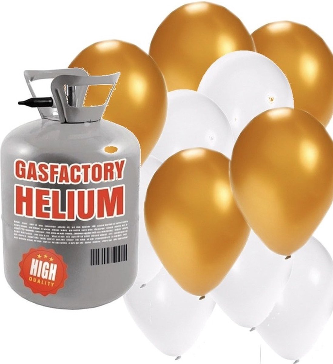 Helium tank – met goud en witte ballonnen – Bruiloft – Heliumgas – met ballonnen voor bruiloft en party