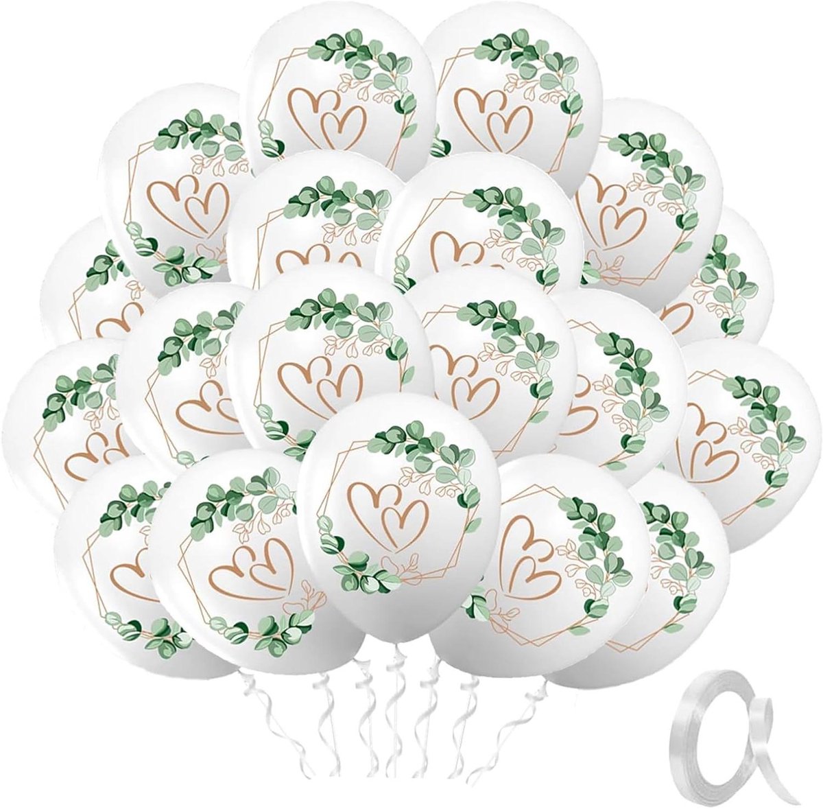 JGS Premium – 25 ballonnen voor bruiloft hartballonnen met eucalyptus patroon voor huwelijksaanzoek – Wit
