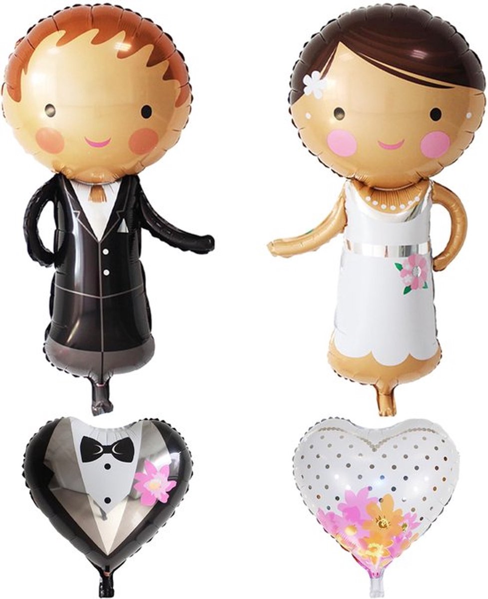 KARZO – Set van 2 aluminiumfolie ballonnen in bruid en trottel ontwerp, ideaal voor romantische decoratie bij bruiloften en feestelijke gelegenheden
