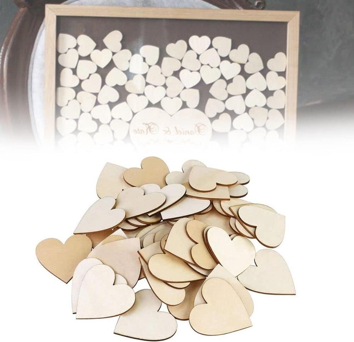 Allecto Plus – Houten hartjes decoratie voor bruiloft en knutselen – DIY handwerk versieringen – Houten harten gastenboek strooidecoratie