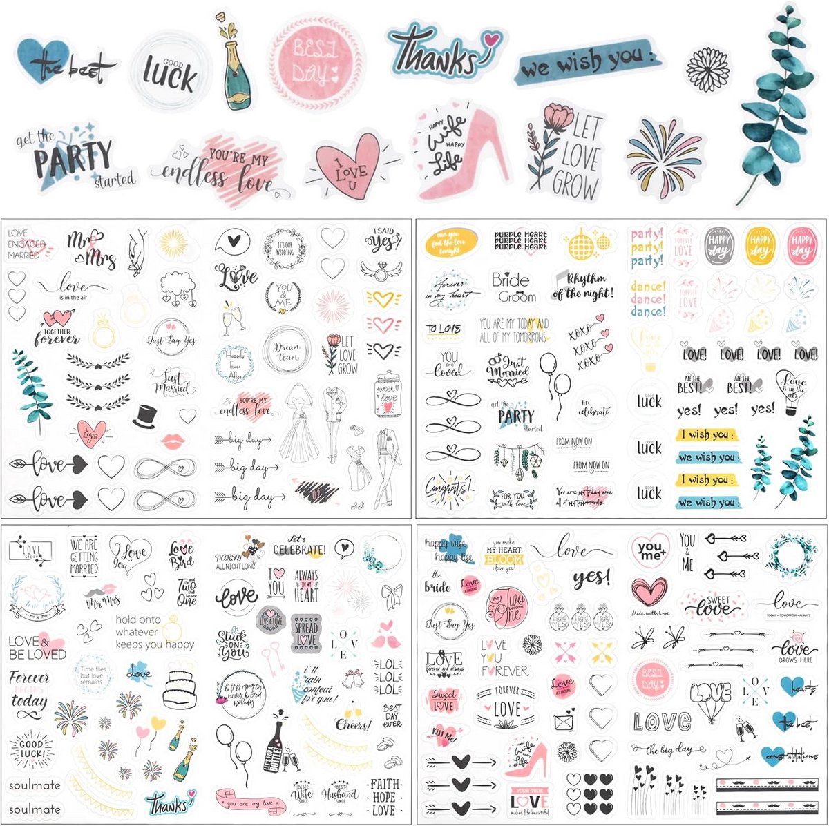 Grote Set Bruiloft Stickers (230 Stuks) – Decoratie voor Gastenboek, Fotoalbums en Kaarten