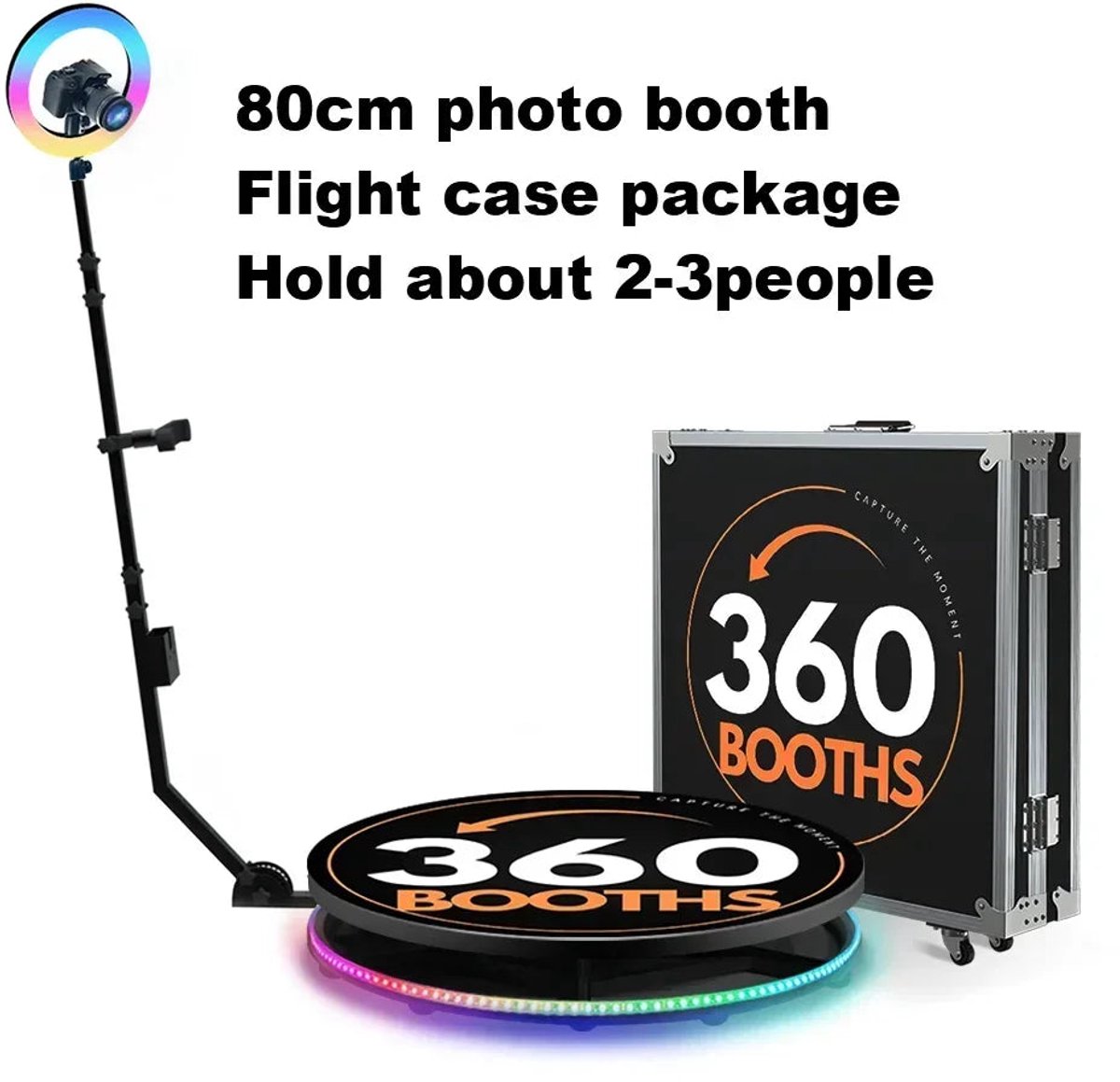 360° Photobooth – 360 Graden Foto Booth – Roterende Selfie Booth – Event Fotocabine – Groepsfoto Booth – RGB Ringlamp Met Dimbaar Licht – Geschikt Voor Maximaal 7 Personen