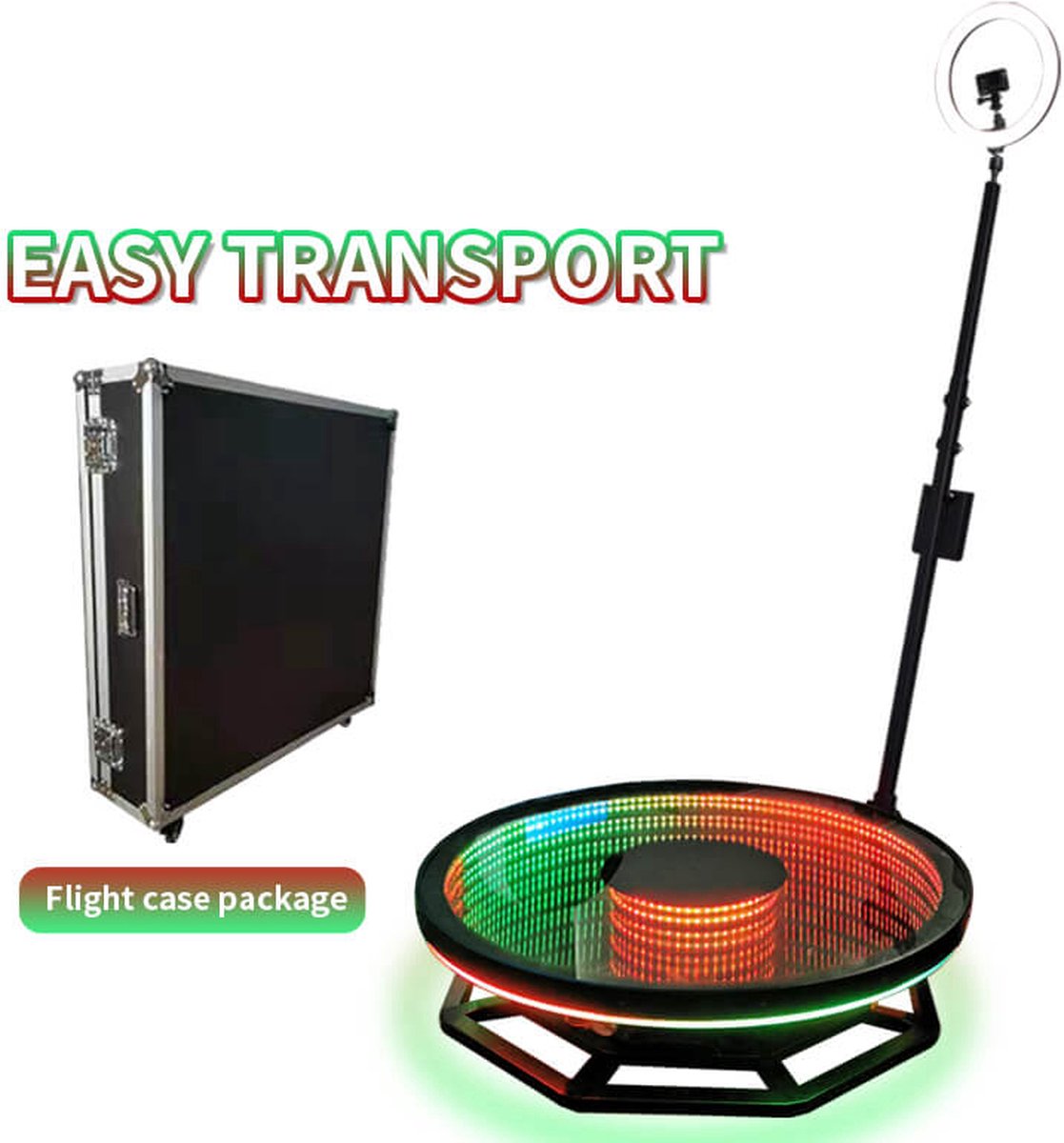 360 Photobooth Deluxe – Inclusief flightpack en accesoires – 3 a 4 personen 100Cm