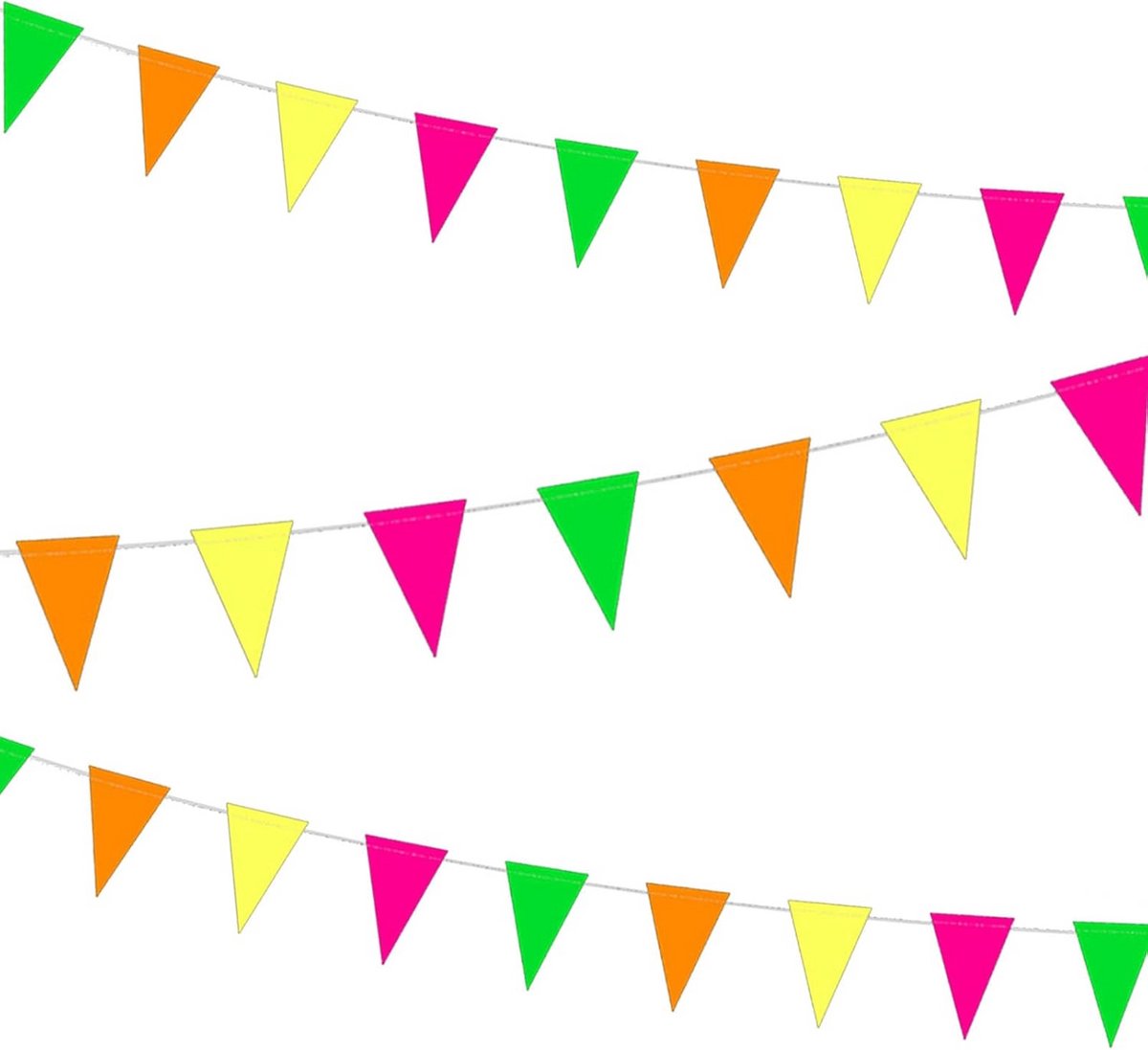 Maak uw volgende viering onvergetelijk met deze set van 2 neon papieren slingers! Deze levendige decoratie is ontworpen om op te vallen, vooral onder blacklight. Perfect voor themafeesten, verjaardagen, bruiloften, carnaval of elk ander feest waarbij u een energieke sfeer wilt creëren. Deze adembenemende hangende slingers zijn eenvoudig op te hangen en geven uw ruimte direct een feestelijke boost. Ze zijn de ideale neonfeestaccessoires voor zowel indoor als outdoor evenementen. **Toepassingen:** * Neonfeesten & Blacklight-feesten * Verjaardagen en Jubilea * Bruiloften * Carnaval en Festivals * Podium- en Schooldecoraties Creëer een perfecte combinatie van stijl en plezier. Ook een geweldig cadeau-idee! **Specificaties:** * Inhoud: 2 stuks slingers * Materiaal: Neon papier * Kleur: Neon (lichtgevend onder UV-licht) **Belangrijke opmerkingen:** Houd rekening met kleine maatverschillen door handmatige meting. Kleuren kunnen licht afwijken door verschillende monitorinstellingen. Gebruik dit product zoals beschreven; houd het uit de buurt van warmtebronnen, vlammen en buiten bereik van kinderen.