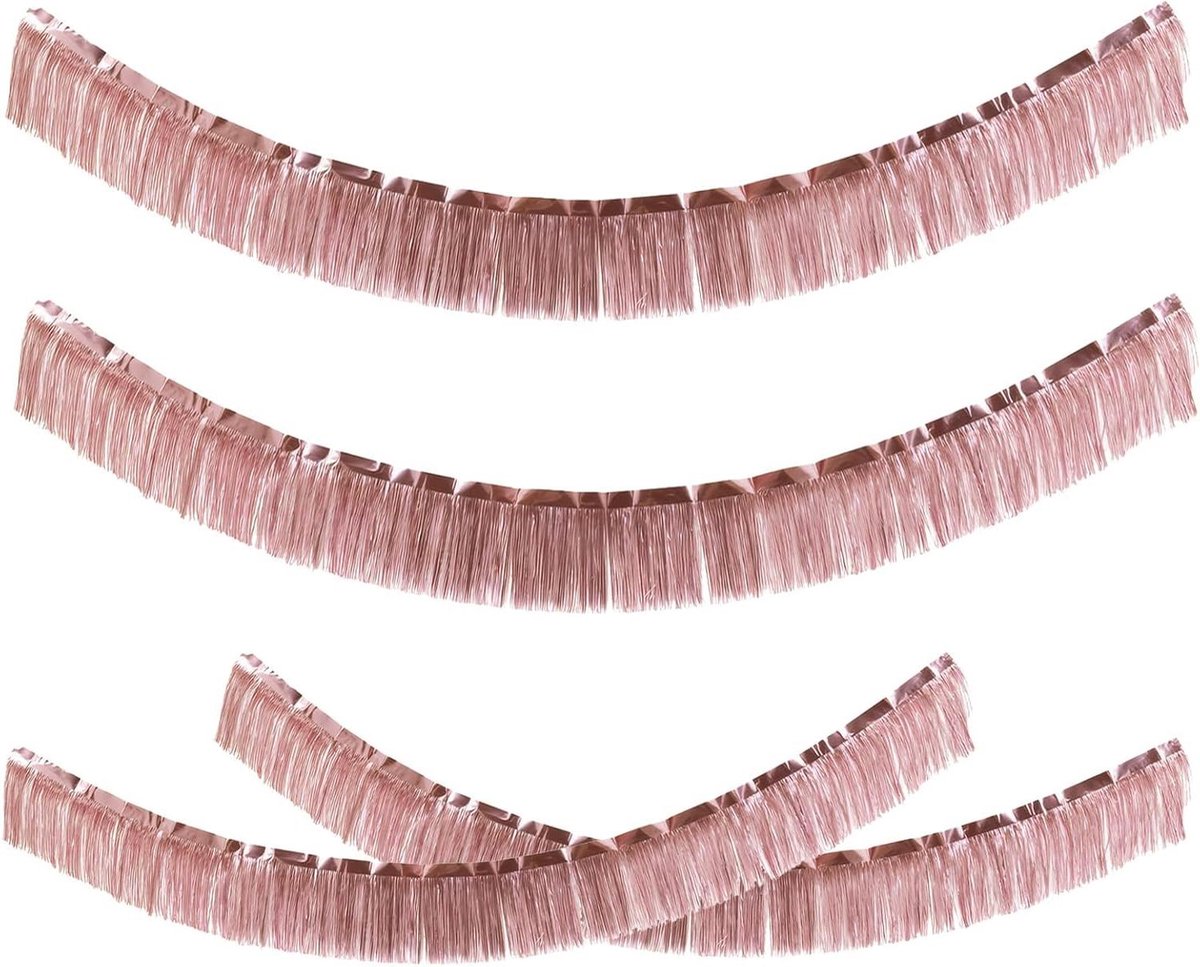 Allecta – Rosegouden Foliefranjes Slingers, 4 Stuks, 20cm x 200cm – Feestdecoratie voor themafeest, verjaardag, bruiloft