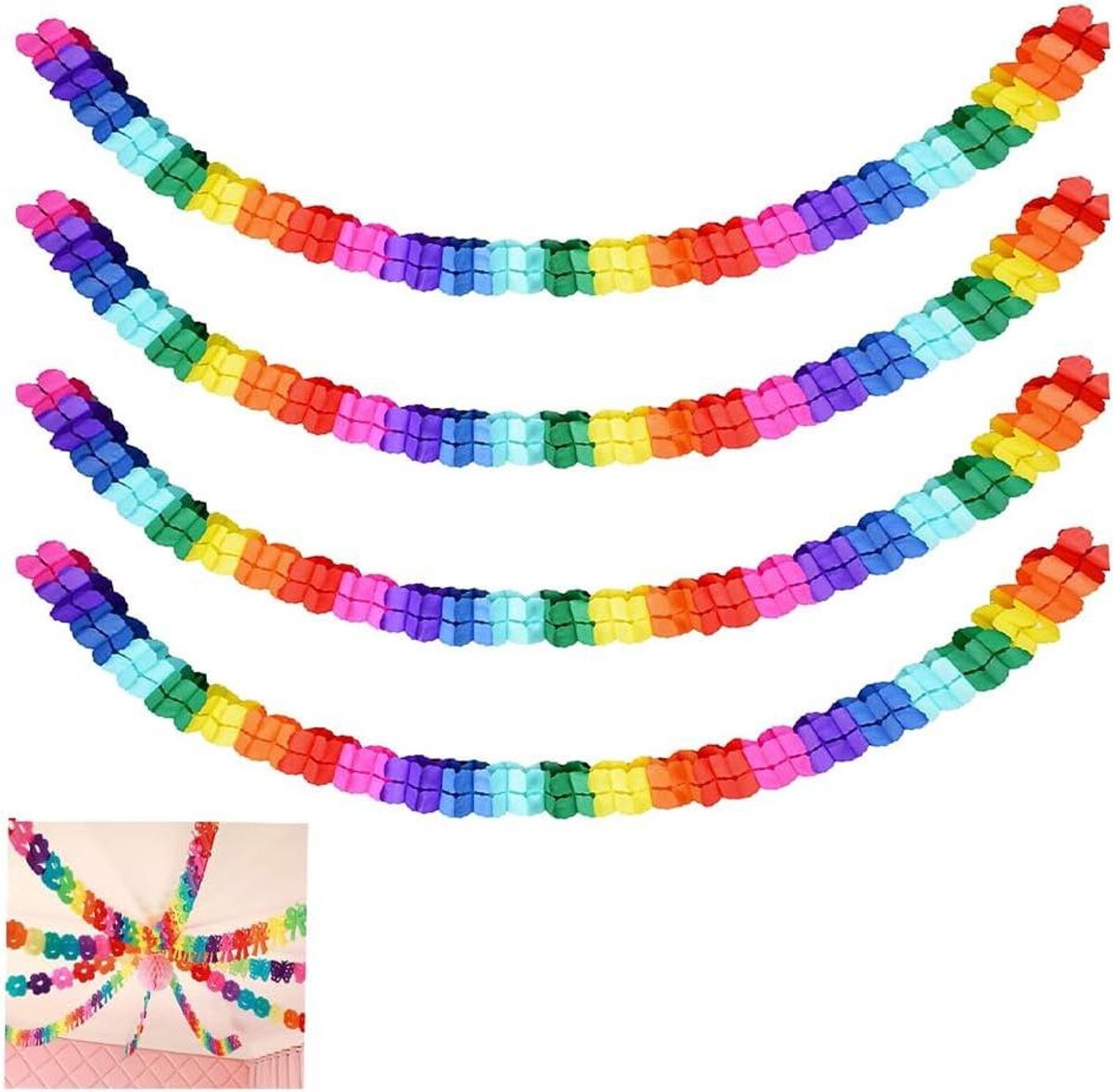 Allecto Plus – Decoratieve papieren slingers in diverse kleuren voor verjaardagsfeesten, festivals en bruiloften – 4 stuks