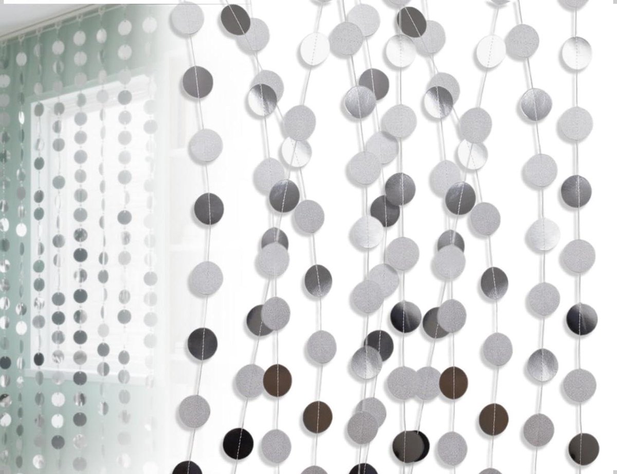 Cosensi – Set van 3 decoratieve ronde slingers met stippen voor verjaardagen, bruiloften en kinderfeesten buitenshuis – zilverkleurig