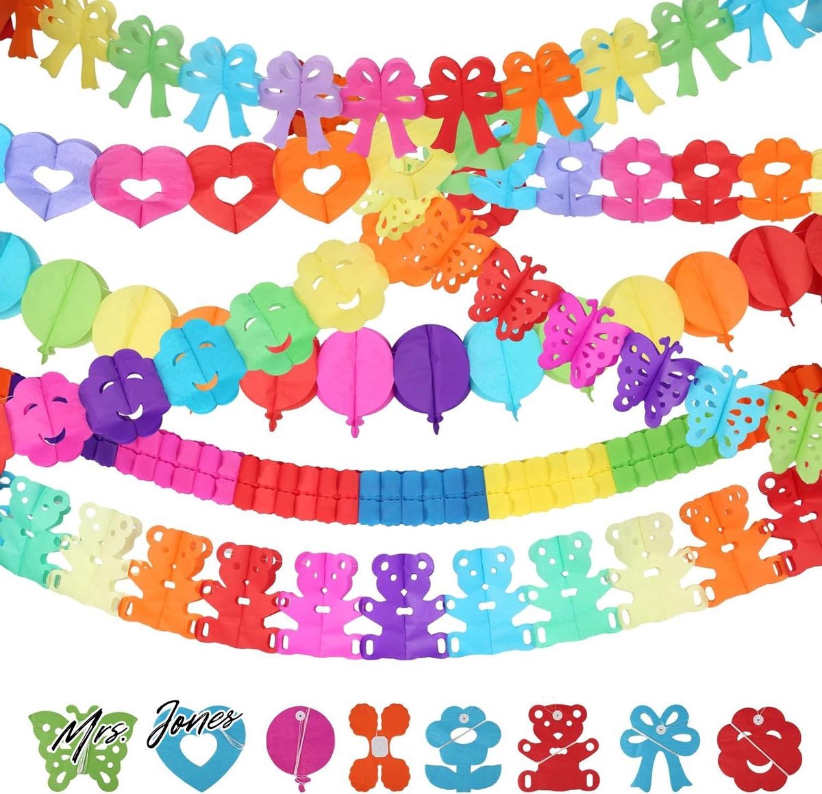Mrs. Jones 8 stuks kleurrijke slingers papier – verjaardag bruiloft – hangende decoratie – afstudeerfeest – carnaval feestdecoratie .