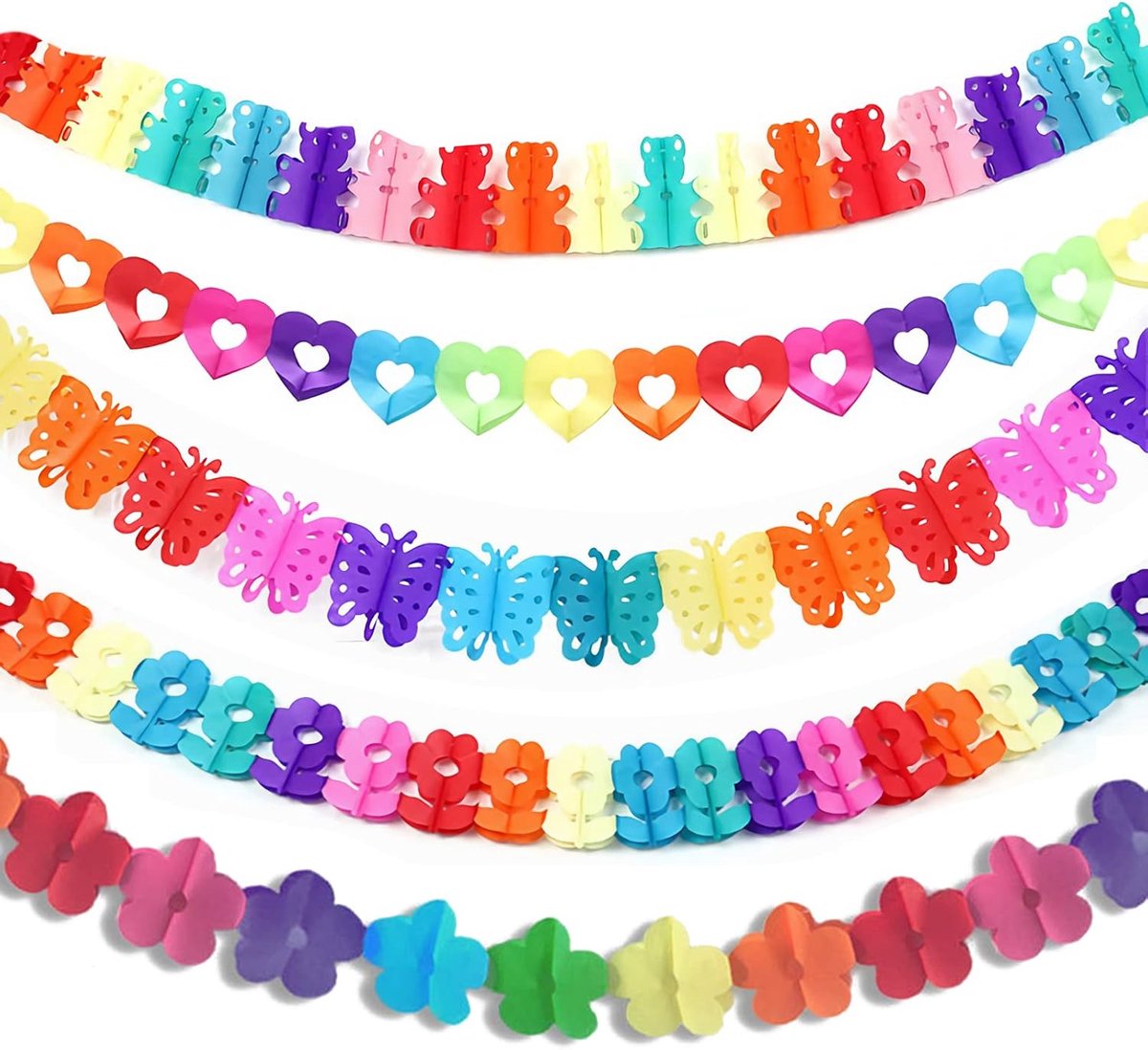 Papieren slinger – 5 stuks – kleurrijke slingers – papieren decoratie – verjaardagsslinger – hangende feestslingers – carnavalsdecoratie – set voor feest – bruiloft – kleurrijke slingers
