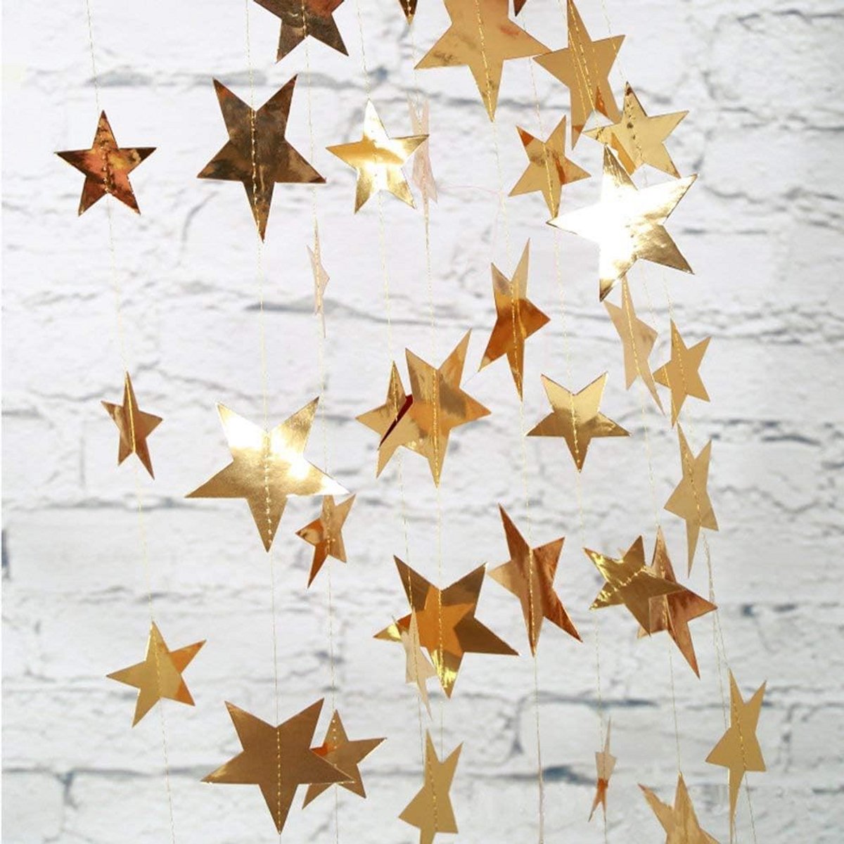 Set van 2 Papieren Ster Slingers Decoratie voor Feesten en Bruiloften – Goud