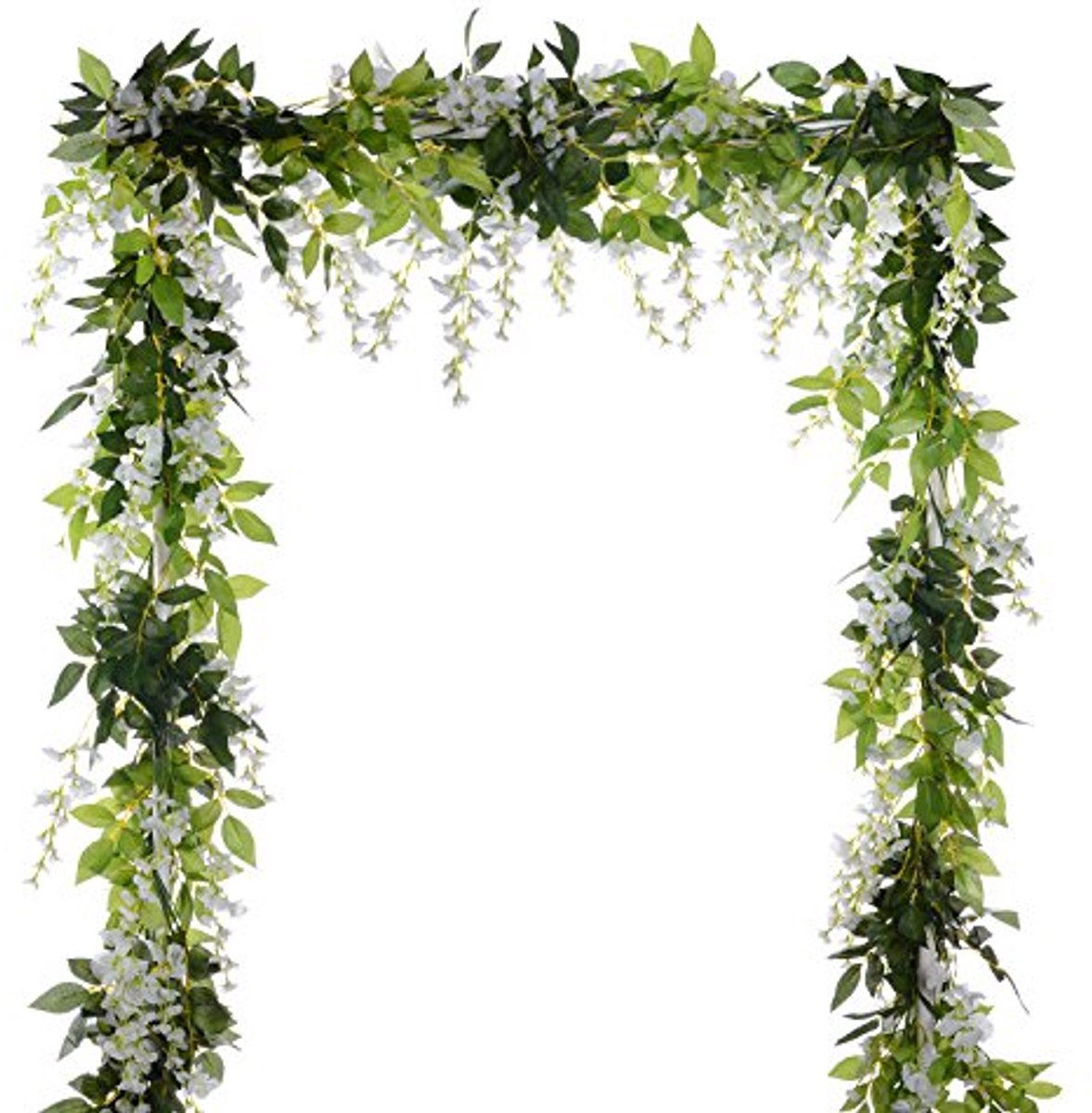 Geef je locatie een romantische uitstraling met deze set van 4 kunstmatige blauweregen slingers. Elk van de 2 meter lange slingers is vervaardigd van hoogwaardige zijde en biedt een weelderige en natuurlijke uitstraling. Perfect als decoratie voor bruiloften, feesten, en stijlvolle woonruimtes. De levendige bloemen en bladeren zijn ideaal voor bloemenarrangementen of als elegante wanddecoratie. Eenvoudig te bevestigen en mooi in gebruik; hang ze op aan een muur, deur of als onderdeel van een bloemenboog. Deze slingers zijn handgemaakt en kunnen makkelijk worden hersteld na verzending. Voeg een vleugje liefde en geluk toe aan je decoratie met deze prachtige kunstbloemen.