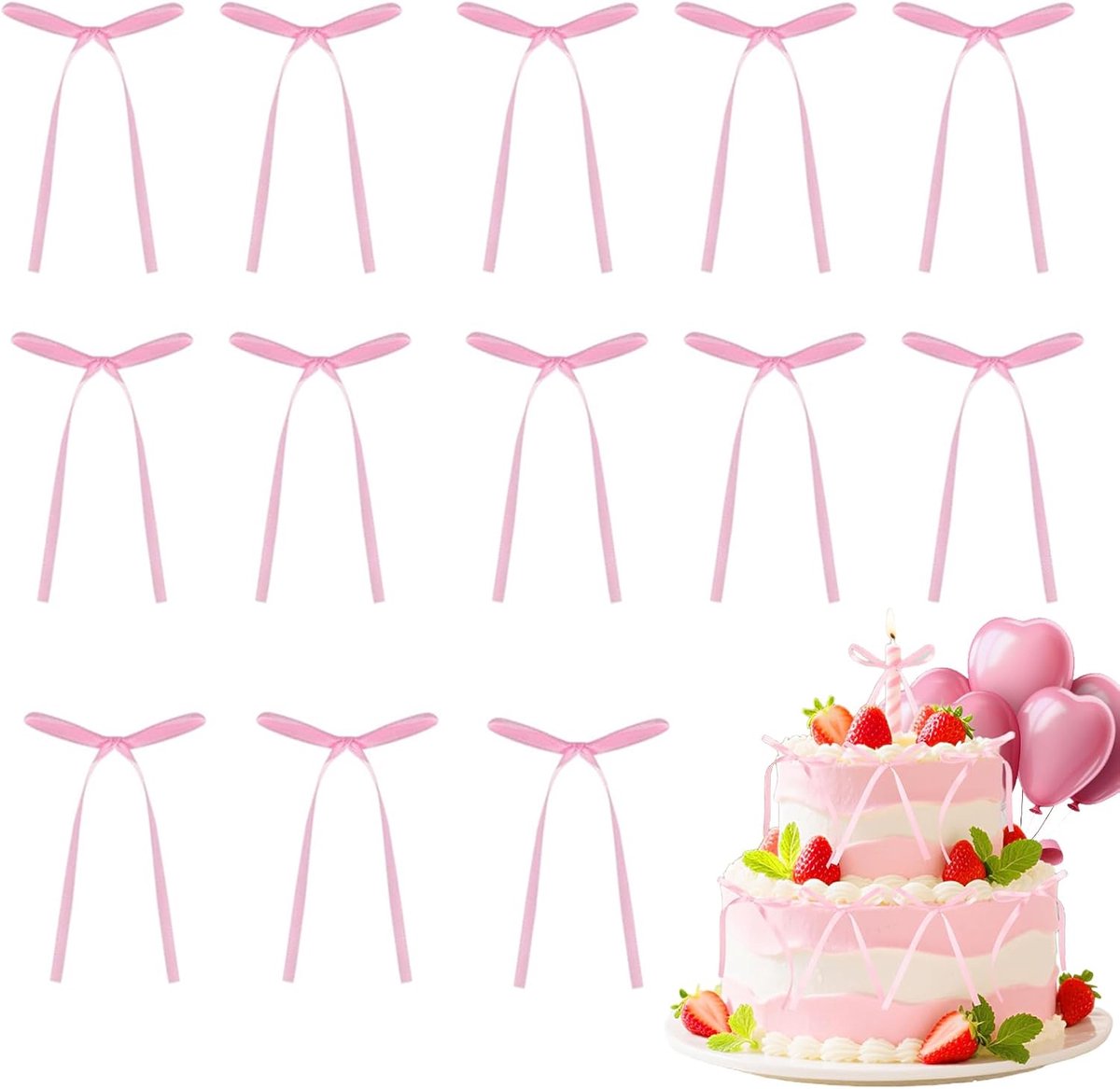 Waarom kiezen voor onze roze cakedecoratie? Materiaal van hoge kwaliteit: Gemaakt van premium satijn, biedt deze cakedecoratie een soepele aanraking en een schitterende glans. Dit zorgt ervoor dat je cake er niet alleen fantastisch uitziet, maar ook een gevoel van luxe uitstraalt.
