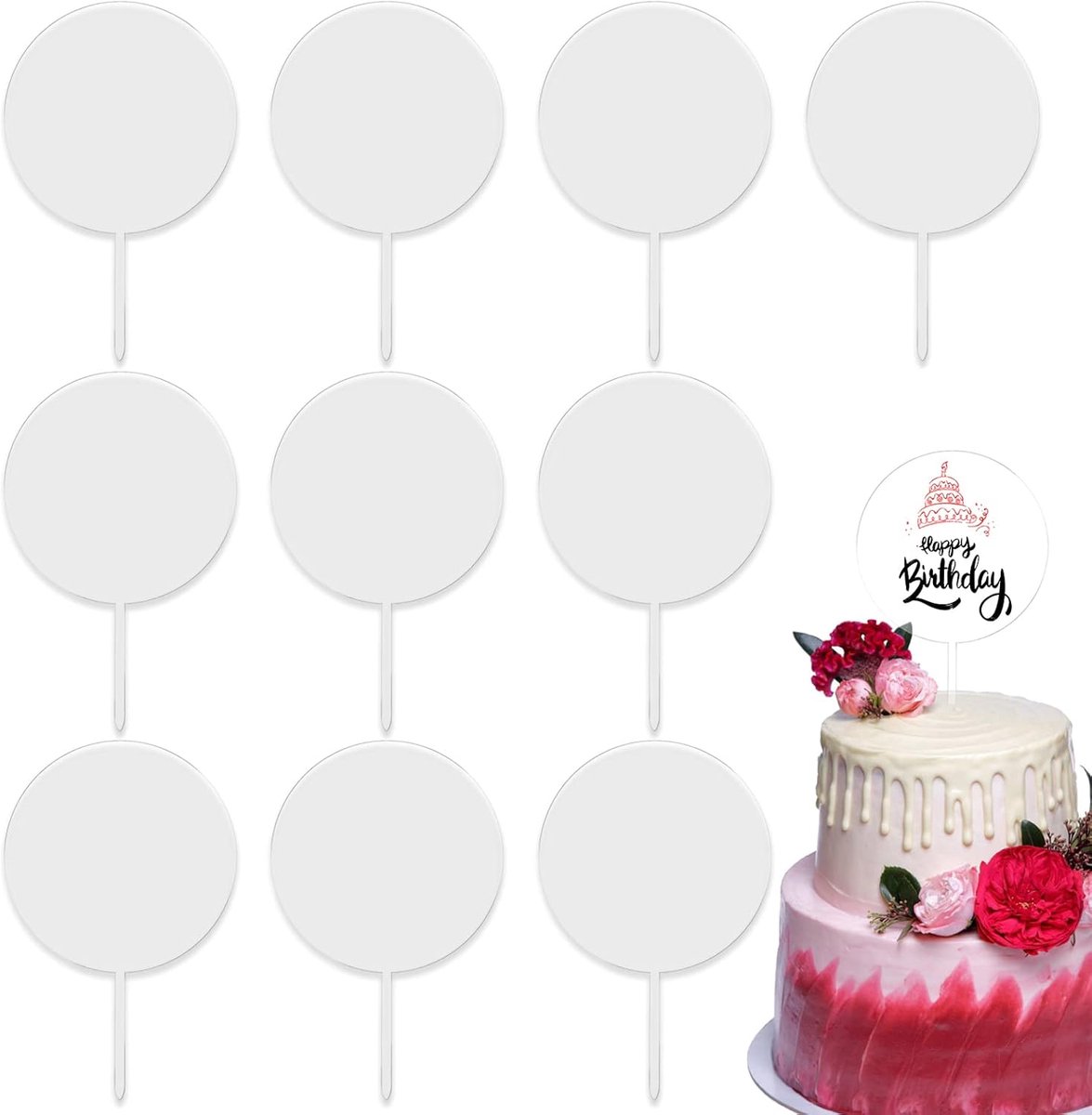 Acryl taarttoppers – 10 stuks ronde doorzichtige cirkel doe-het-zelf verjaardagstaarttopper – gepersonaliseerde cupcaketoppers voor babyborrel bruiloft decor