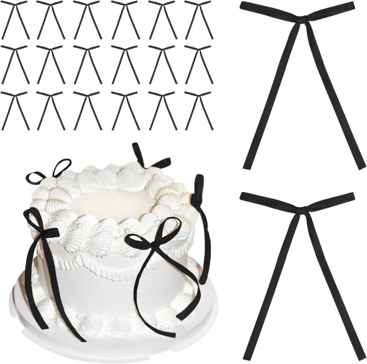 Allecto Plus – Zwarte Strik Taartdecoraties Set van 20 – Taarttoppers voor Verjaardag, Bruiloft, Jubileum – Feestelijke Taartprikkers in Zwart Themakleur