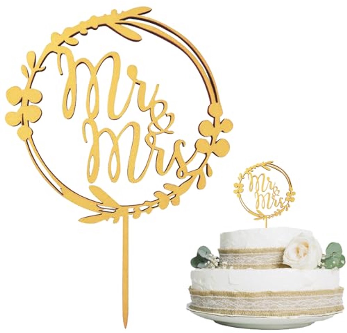 Bruiloft Taarttopper – Houten Cake Decoratie voor Mr & Mrs