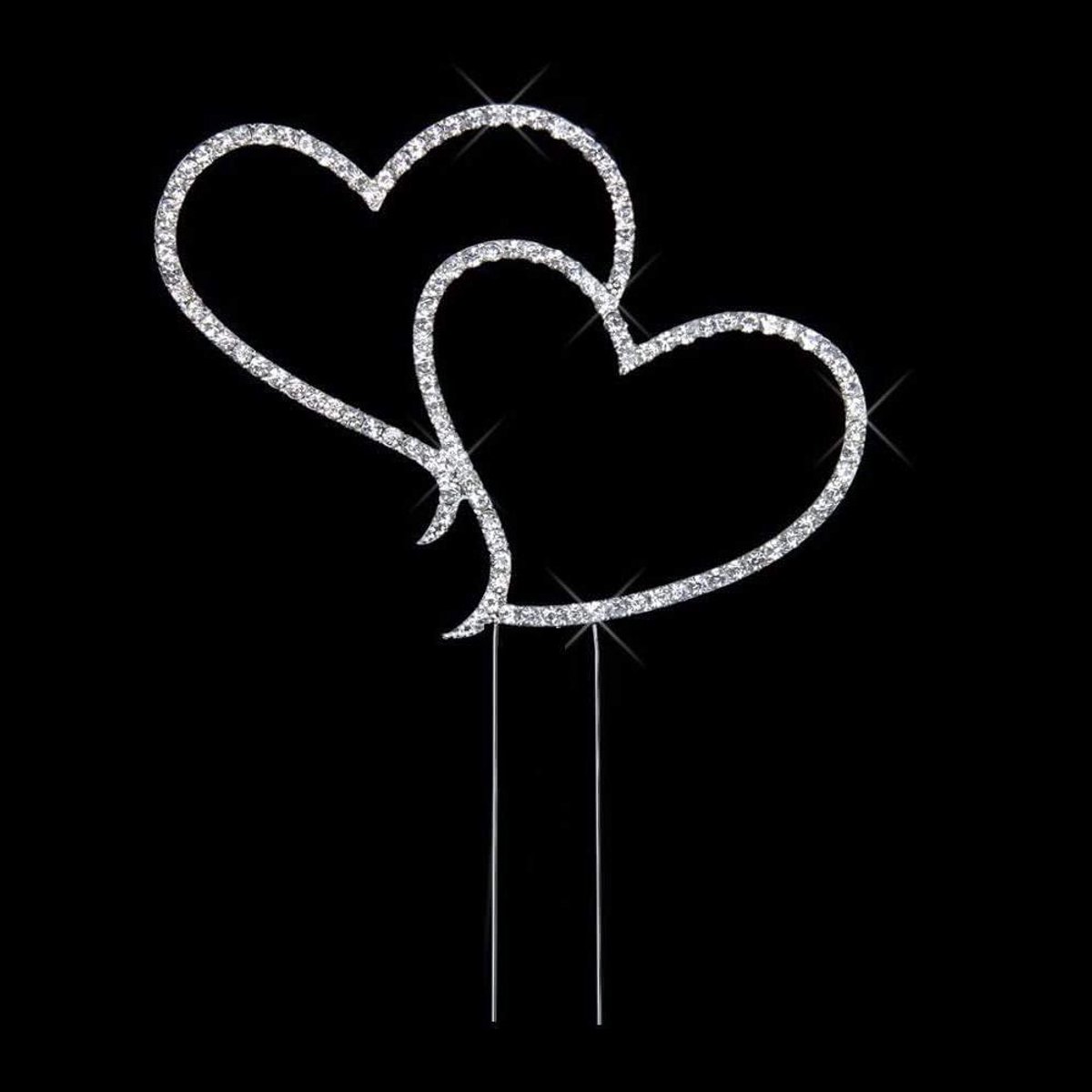 Crystal Double Hearts Taarttopper – Bruiloft Versiering voor Taart – Romantische Taartdecoratie met Stralende Rhinestones voor Huwelijk en Jubilea – Zilverkleurig – Luxe en Elegant Design