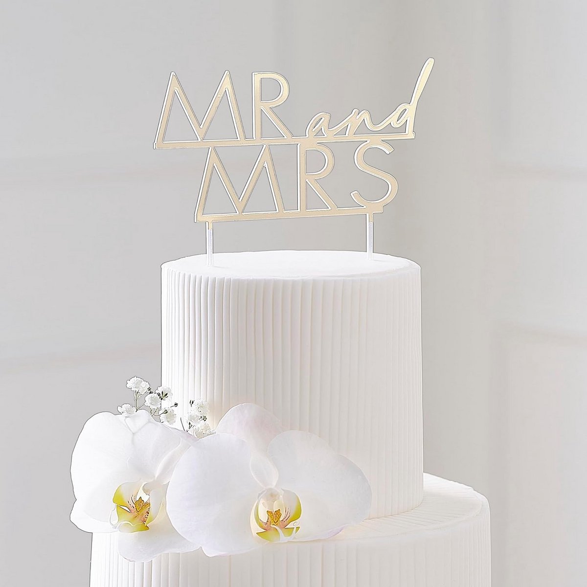 Deze gouden acryl taarttopper is de perfecte finishing touch voor jouw bruidstaart. Met zijn unieke ontwerp voegt deze topper een instant chic element toe aan jouw bruiloft. De moderne luxe trouwcollectie biedt premium texturen en gouden accenten voor een luxueus en klassiek thema. Dit pakket bevat één gouden acryl ‘Mr en Mrs’ cake topper in champagne goud, afmetingen 14,5 cm (H) x 15,8 cm (B). Ideaal voor elke bruidstaart!