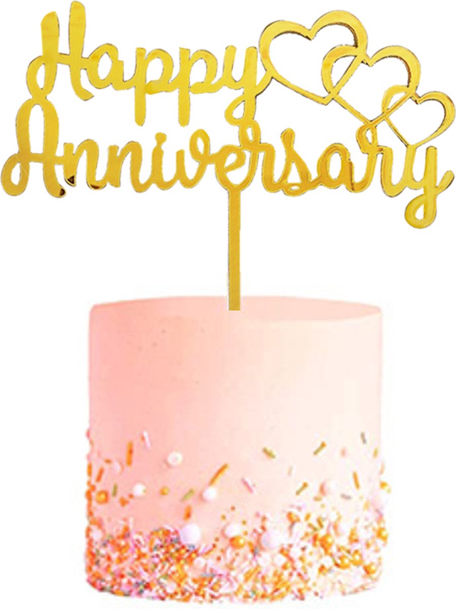 Ben je opzoek naar een fantastische taart topper voor op jou jubileum taart? Dan mag deze feestelijke Anniversary topper natuurlijk niet ontbreken. Deze prachtige gouden cake topper maakt jouw taart volledig af. Laat je gasten zien dat je alles tot in de puntjes heb geregeld en schuif die feestelijke maar vooral lekkere taart maar op tafel!