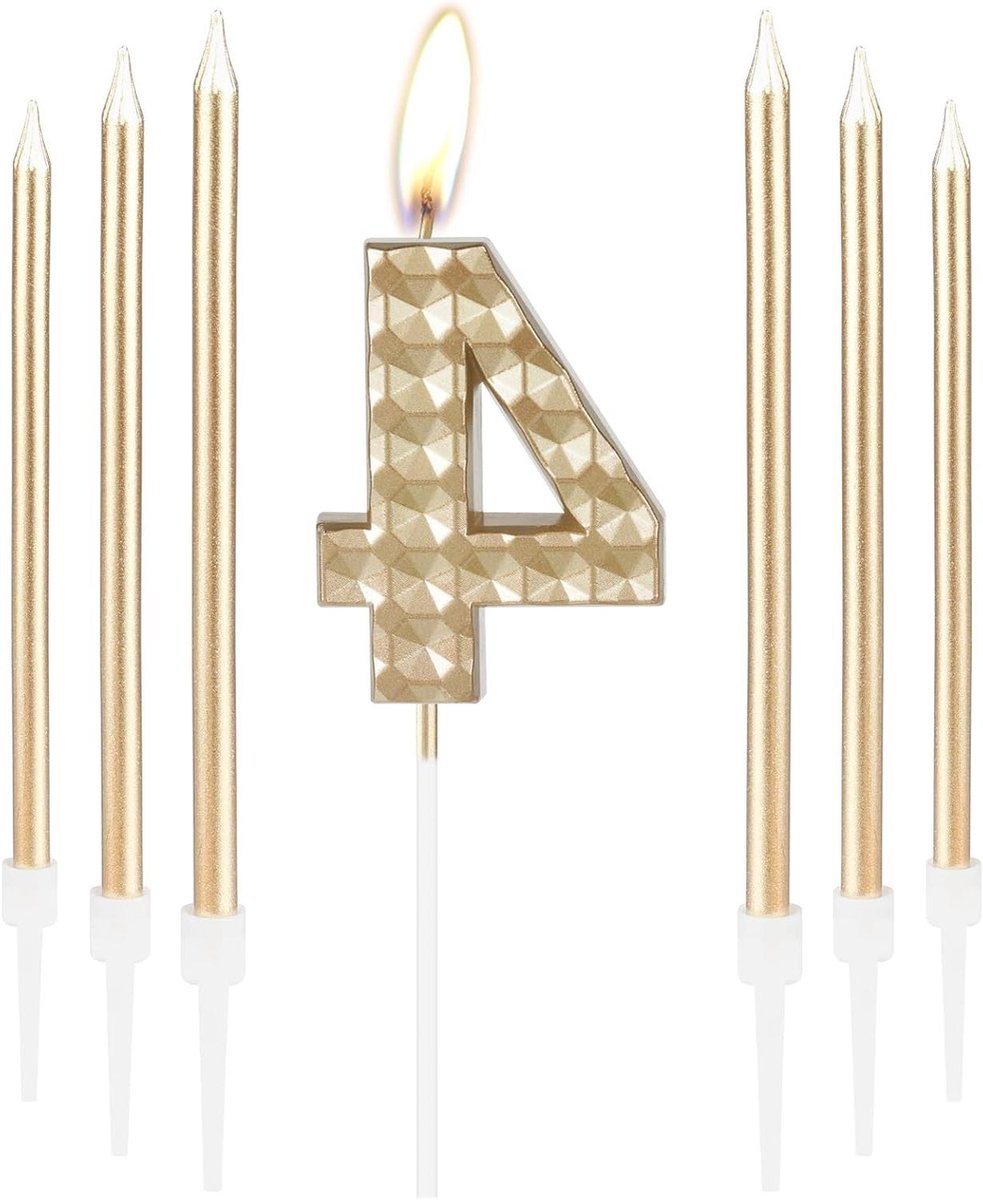 Kaarsen voor 4e verjaardag – champagne goud cijfer 4 – taarttopper meisjes jongens – vrolijke kaarsdecoraties vrouwen mannen – feestdecoratie bruiloft jubileum