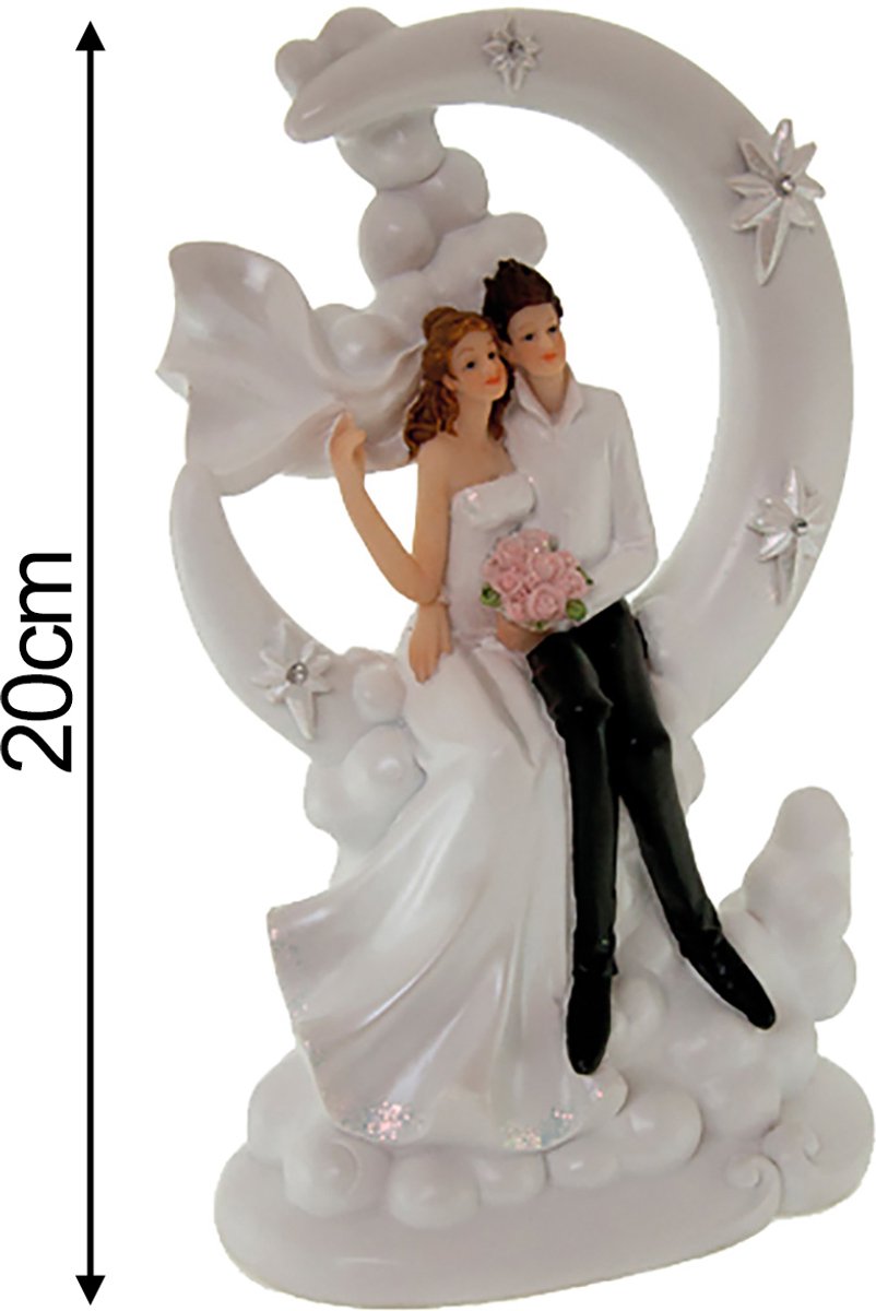 Romantische Bruid & Bruidegom Taarttopper – Koppel op Maan – Polyresin Beeldje – 20 cm – Bruiloft Decoratie Omschrijvi