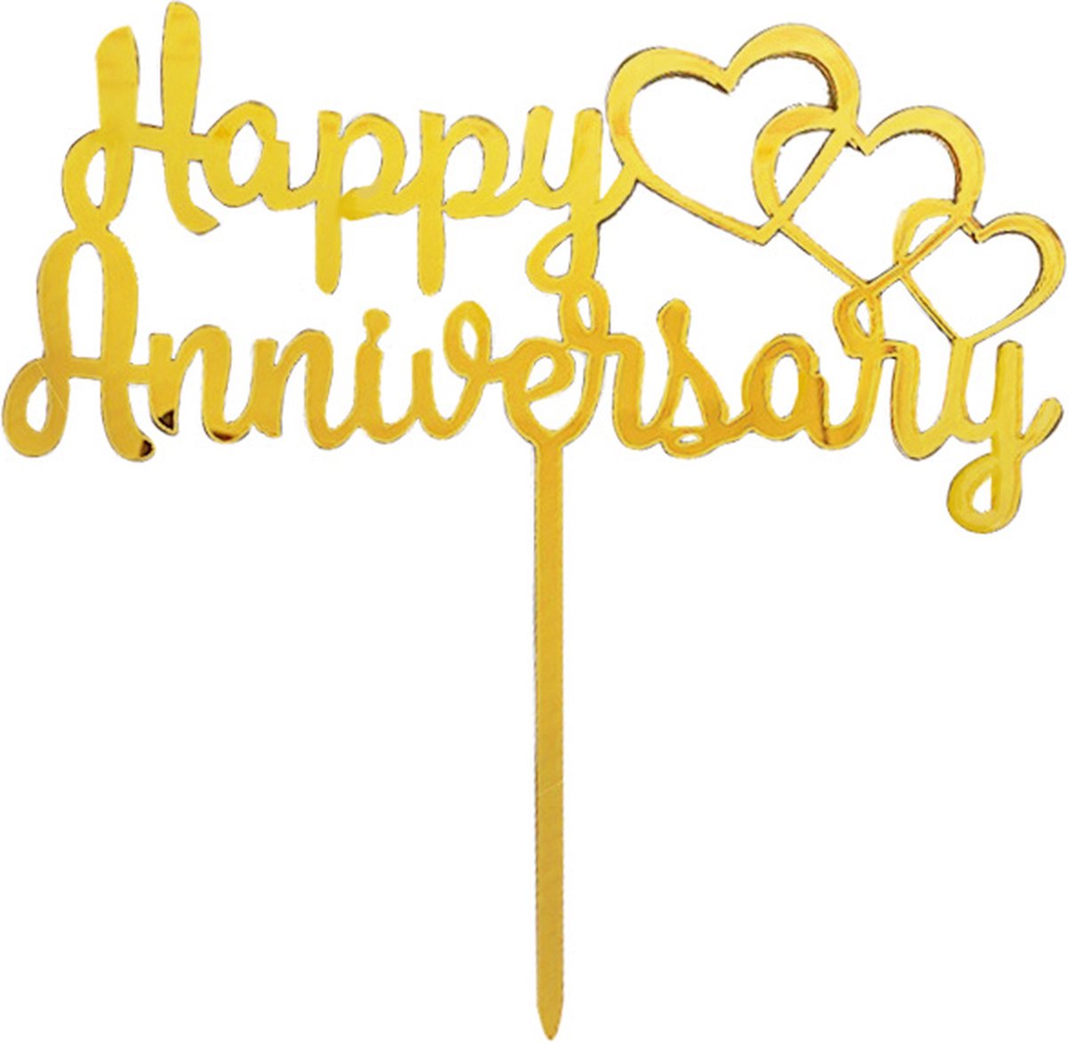 Taart Decoratie Anniversary Taarttopper Cake Topper Jubileum Huwelijk Taartdecoratie Bruiloft Goud – 1 Stuk