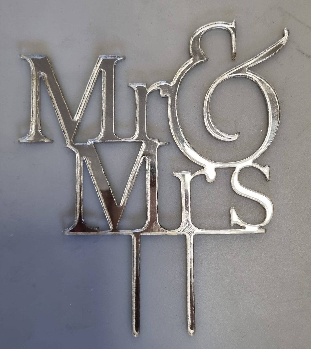 Taarttopper Mr/Mrs – Bruiloft taarttopper zilver spiegelacryl – Taarttopper huwelijk – trouwen