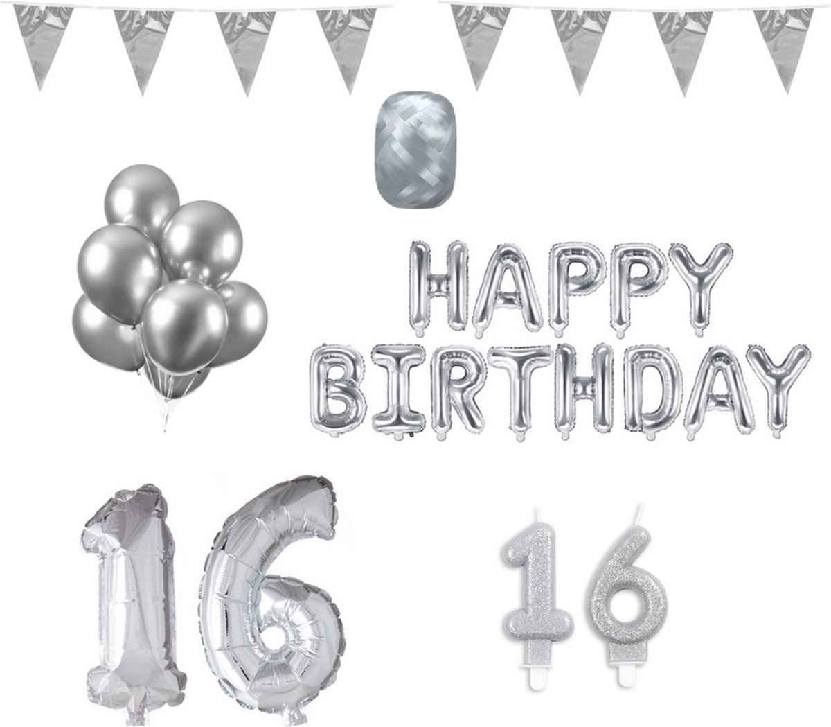 16 jaar Verjaardag Versiering Pakket Zilver.