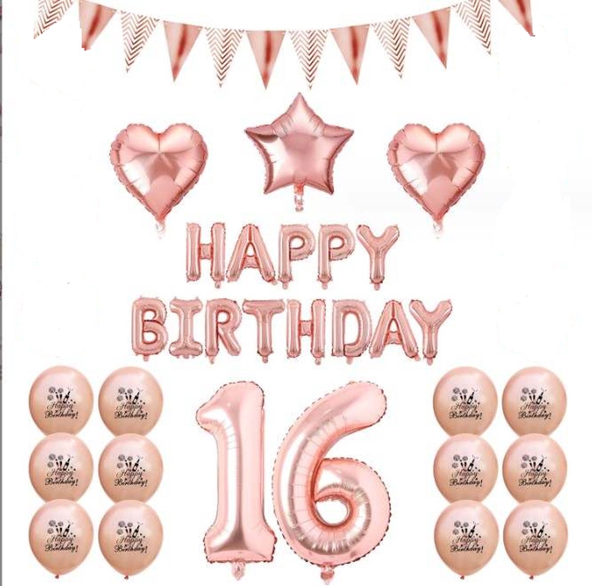 Feestversiering – Verjaardag 16 Jaar – Ballonnen, Slingers & Sterren – Roze