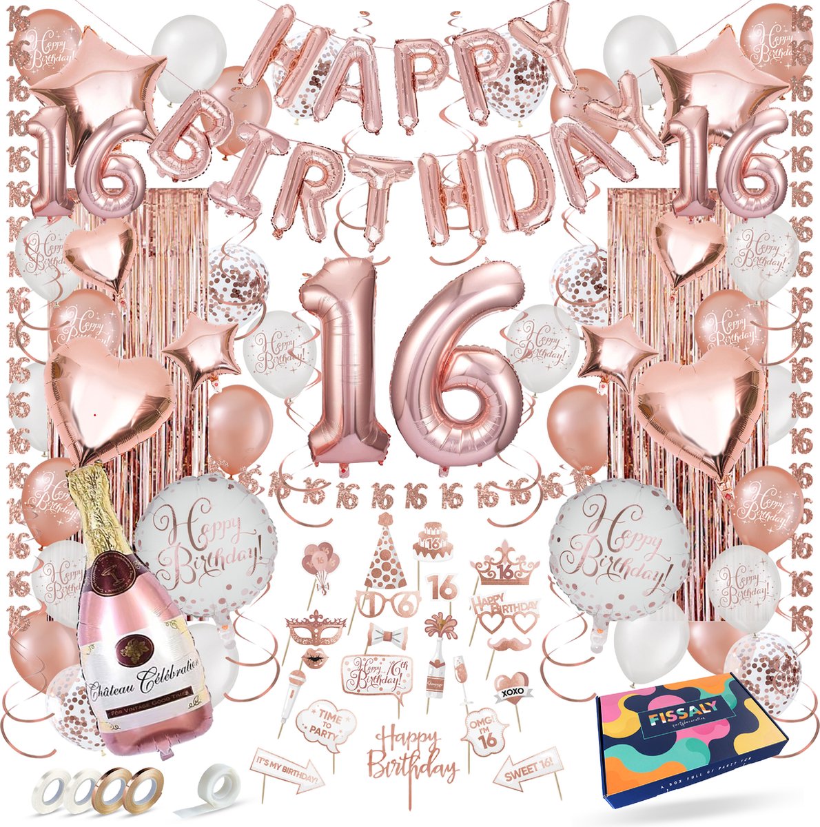 Fissaly Sweet 16 Jaar Rose Goud Verjaardag Decoratie Versiering – Helium, Latex & Papieren Confetti Ballonnen