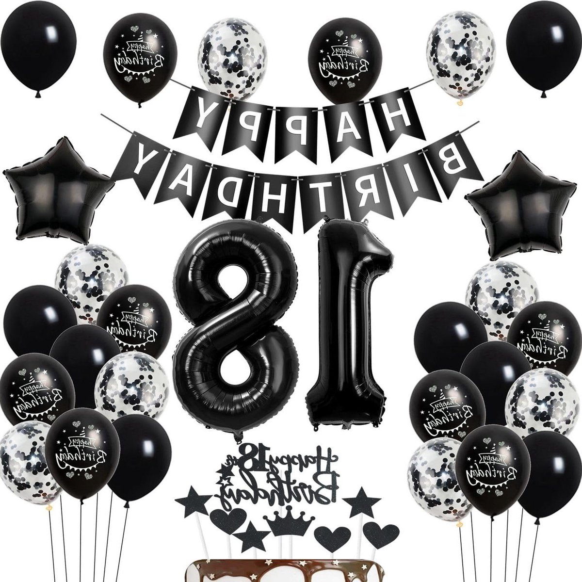 Ballonnen decoratie – 18e verjaardag zwart taartdecoratie – 18 jaar jongens meisjes verjaardagsdecoratie – 18 jaar meisjes zwart