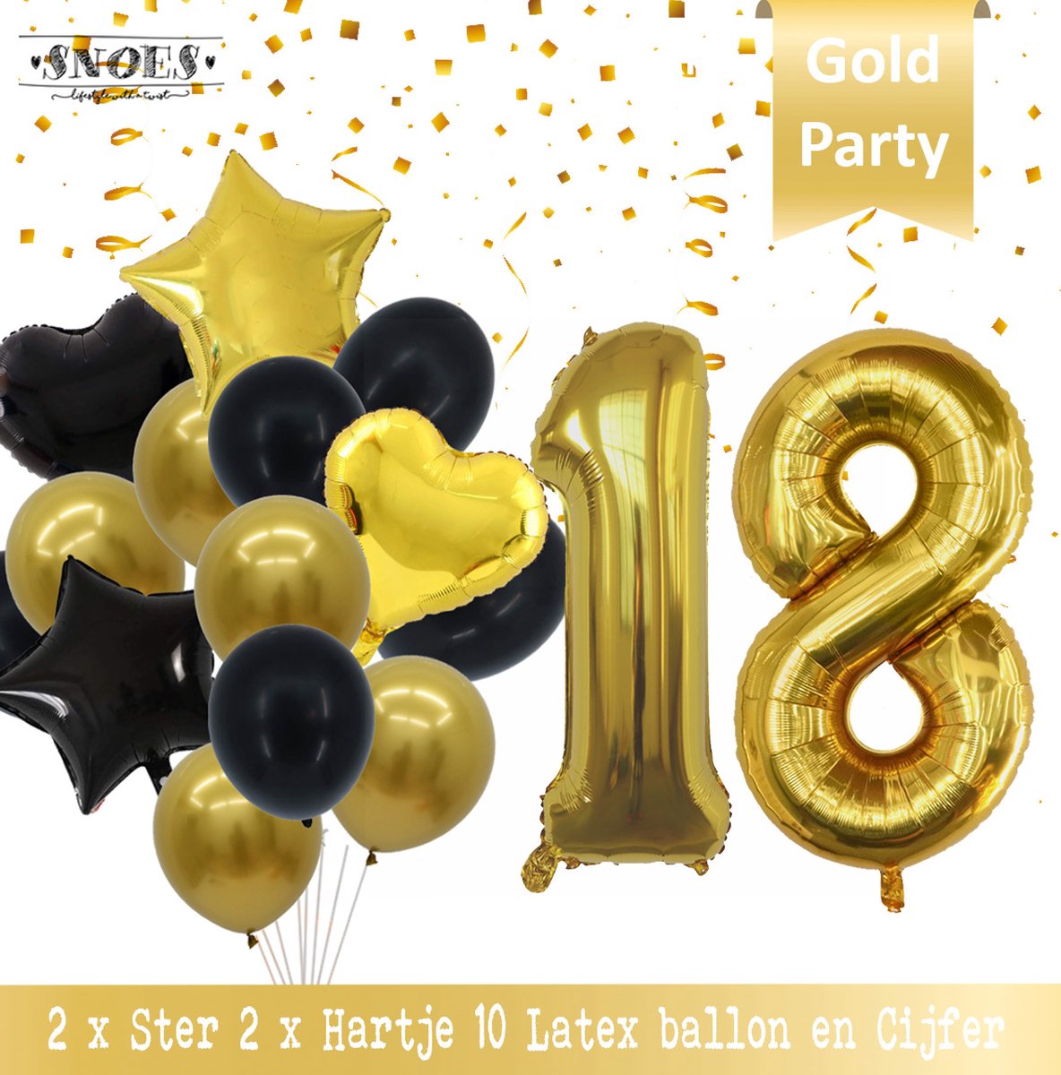Cijfer Ballon 18 Jaar Black & Gold Boeket * Hoera 18 Jaar Verjaardag Decoratie Set van 15 Ballonnen * 80 cm Verjaardag Nummer Ballon * Snoes * Verjaardag Versiering * Kinderfeestje* Tienerfeestje * Thema * Zwart/Goud * Nummer Ballon 18 * Back & Gold