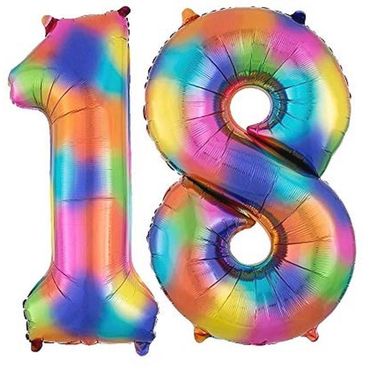 Gekleurde Regenboog XXL Ballon 18, Feestdecoratie Verjaardag 18 Jaar, Nummer Ballon, Verjaardagsfeest Versiering Jongens Meisjes