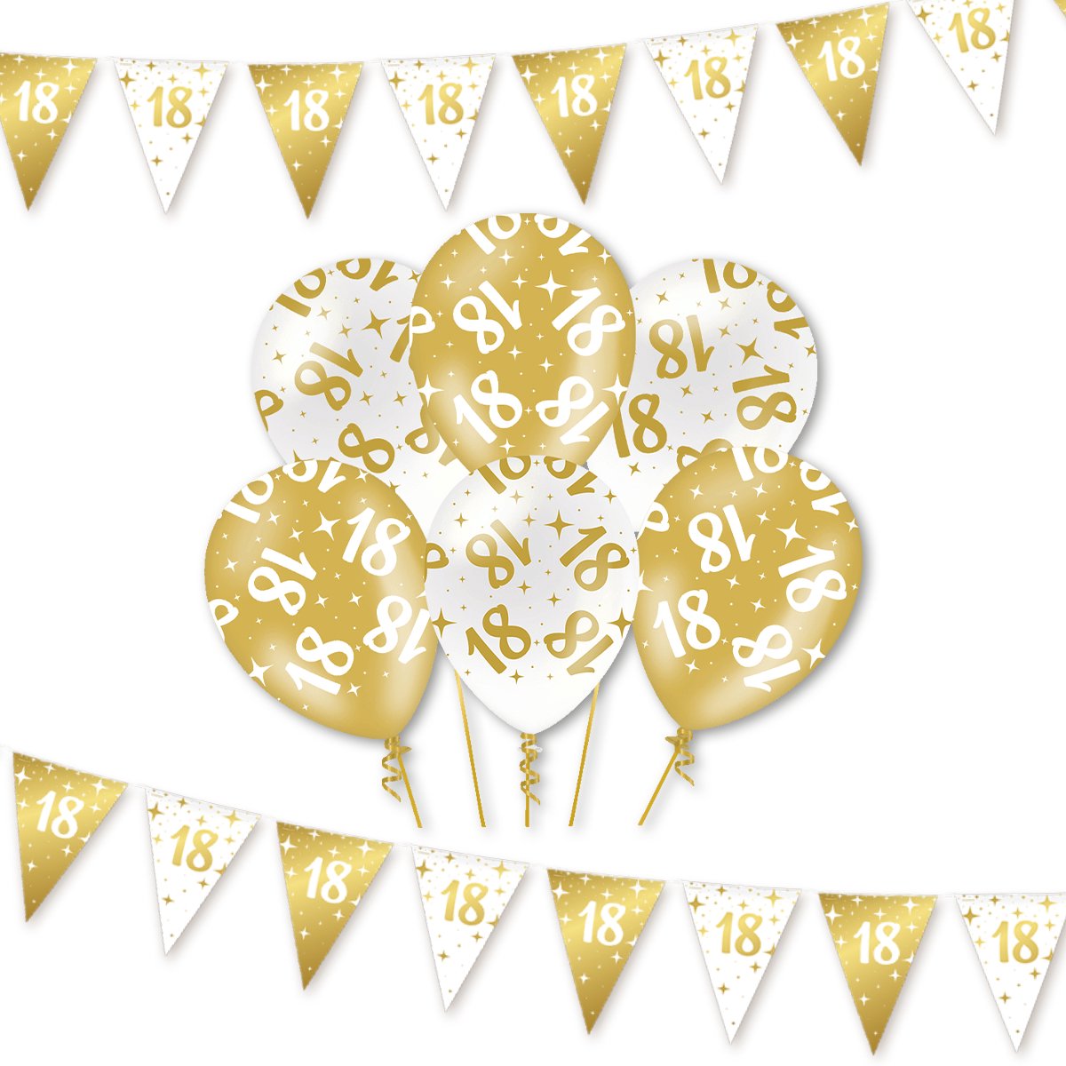 LUQ – Wit-Goud Glam Pakket 18 Jaar – Luxe Slinger & Ballonnen Set – Verjaardag Feest Versiering – Birthday Decor