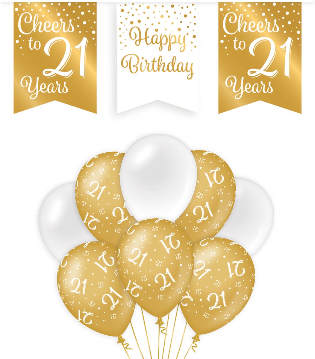 Wordt er binnenkort iemand 21 Jaar? Koop dan dit leuke pakket met een leuke vlaggenlijn en ballonnenset!