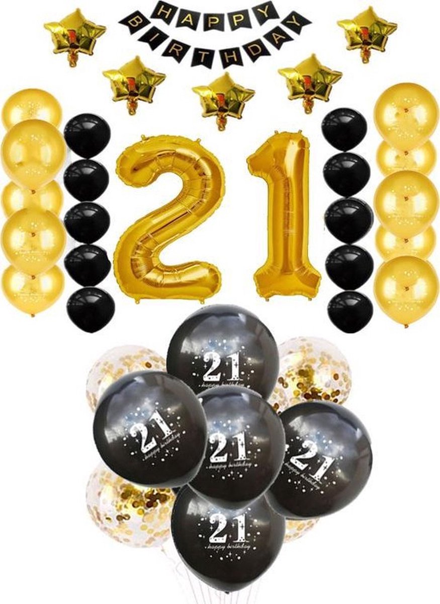 21 jaar verjaardag feest pakket Versiering Ballonnen voor feest 21 jaar. Ballonnen gouden slingers opblaasbare cijfers 21. 38 delig