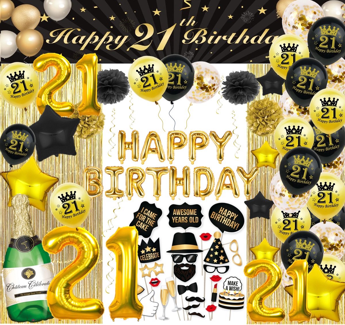 FeestmetJoep 21 jaar verjaardag versiering – 21 Jaar Feest Verjaardag Versiering Set 87-delig – Happy Birthday Slinger & Ballonnen – Decoratie Man Vrouw – Zwart en Goud