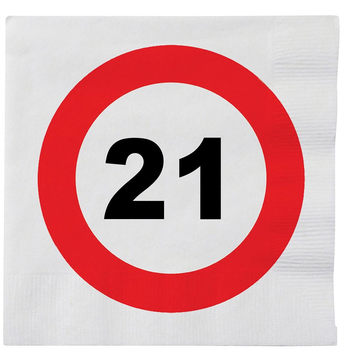 2x Verjaardag servetten verkeersbord 21 jaar – 20x – 33 x 33 cm – Leeftijd thema feest servetten