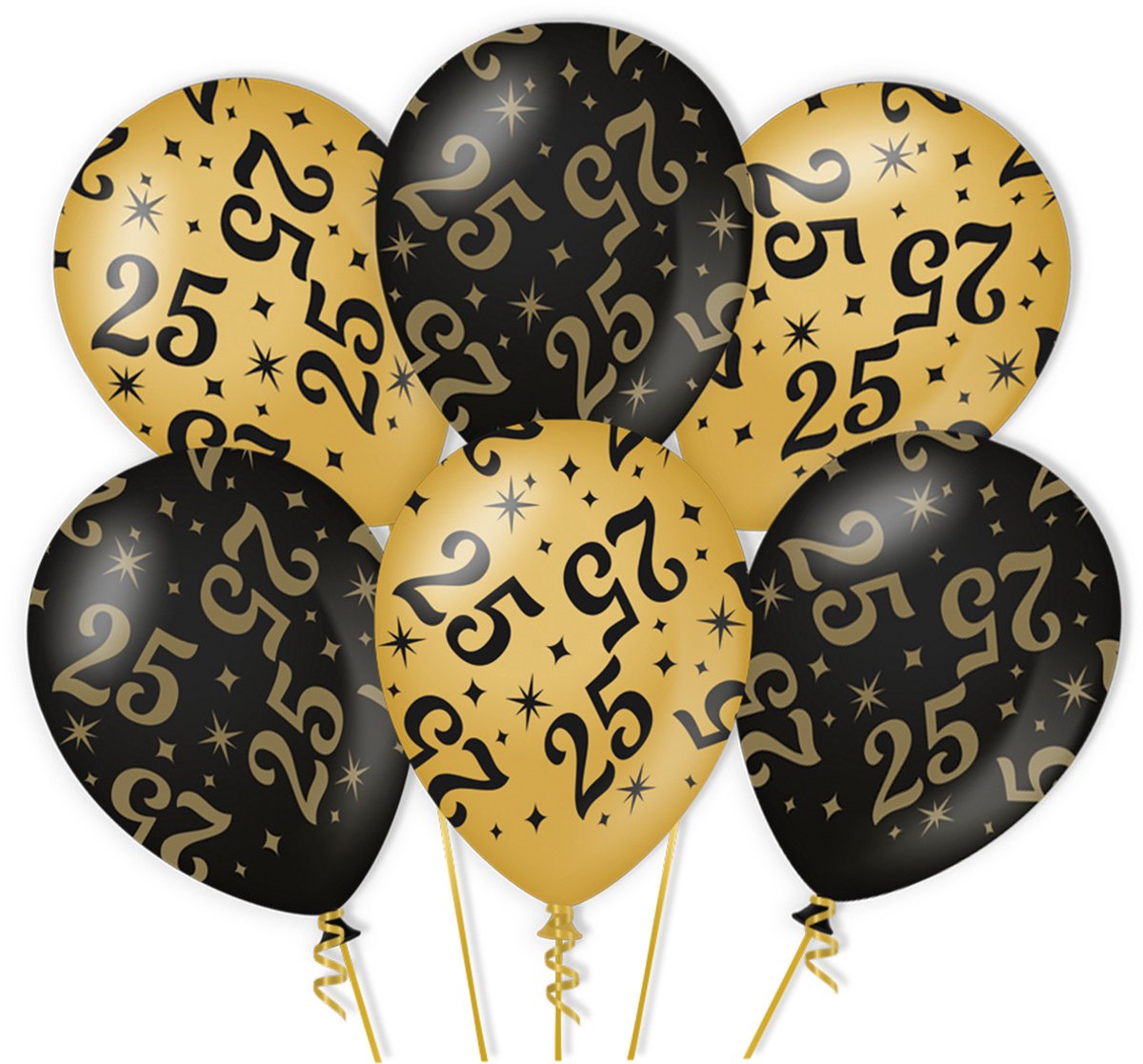BTH – Helium Ballonnen – 25 Jaar – Goud – Zwart – Ballonnen – Verjaardag – Versiering – Decoratie – Feestartikelen – 6st