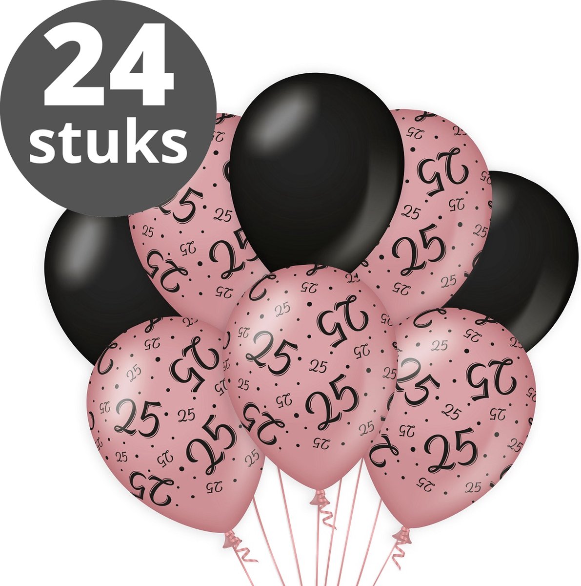 Verjaardag Versiering Pakket 25 jaar (24 stuks) Zwart en Roze – Ballonnen Roze & Zwart – Ballonnen Rose Goud / Black 25 jarige – Verjaardag 25 Birthday Meisje / Vrouw / Dames – Ballonnen verjaardag – Birthday Party Decoratie (25 Jaar)