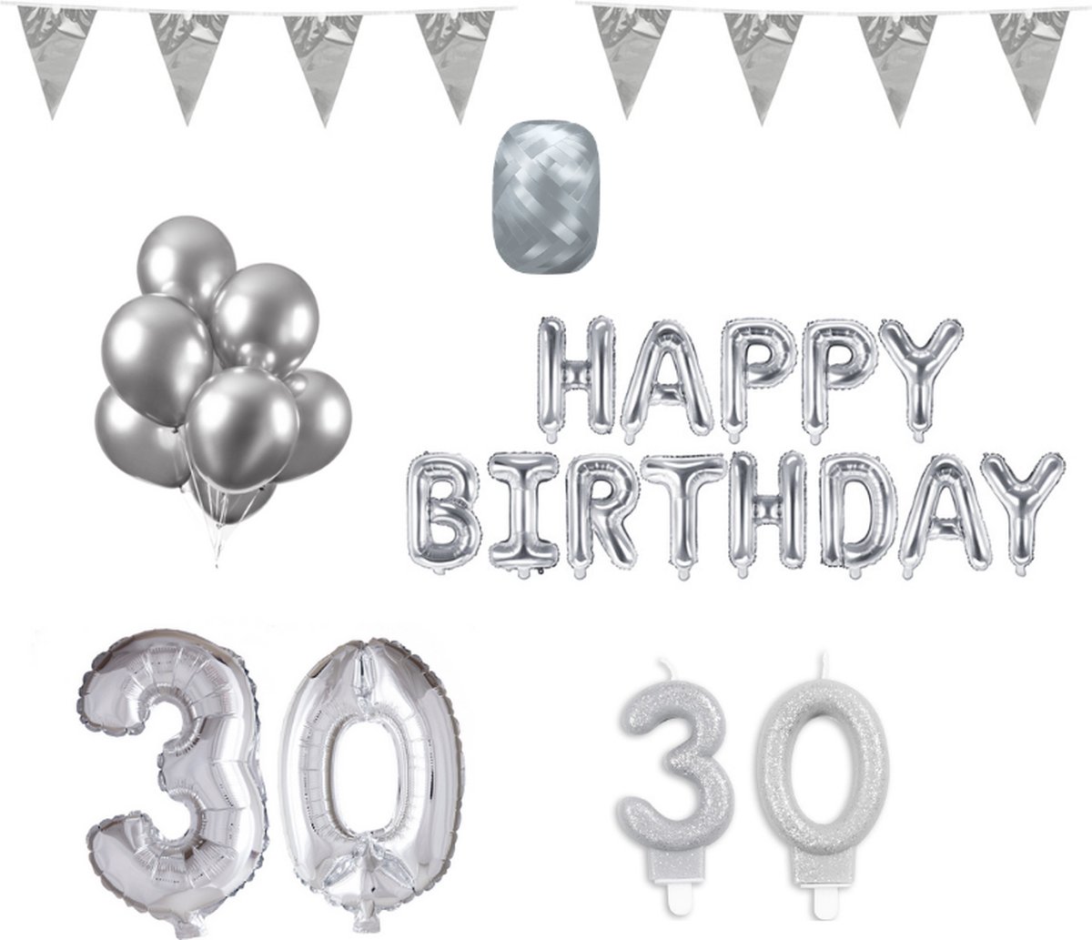 30 jaar Verjaardag Versiering Pakket Zilver.