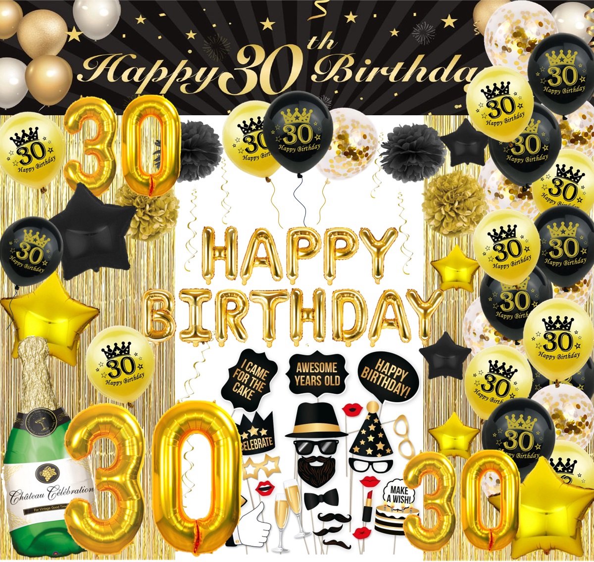 FeestmetJoep 30 jaar verjaardag versiering – 30 Jaar Feest Verjaardag Versiering Set 87-delig – Happy Birthday Slinger & Ballonnen – Decoratie Man Vrouw – Zwart en Goud