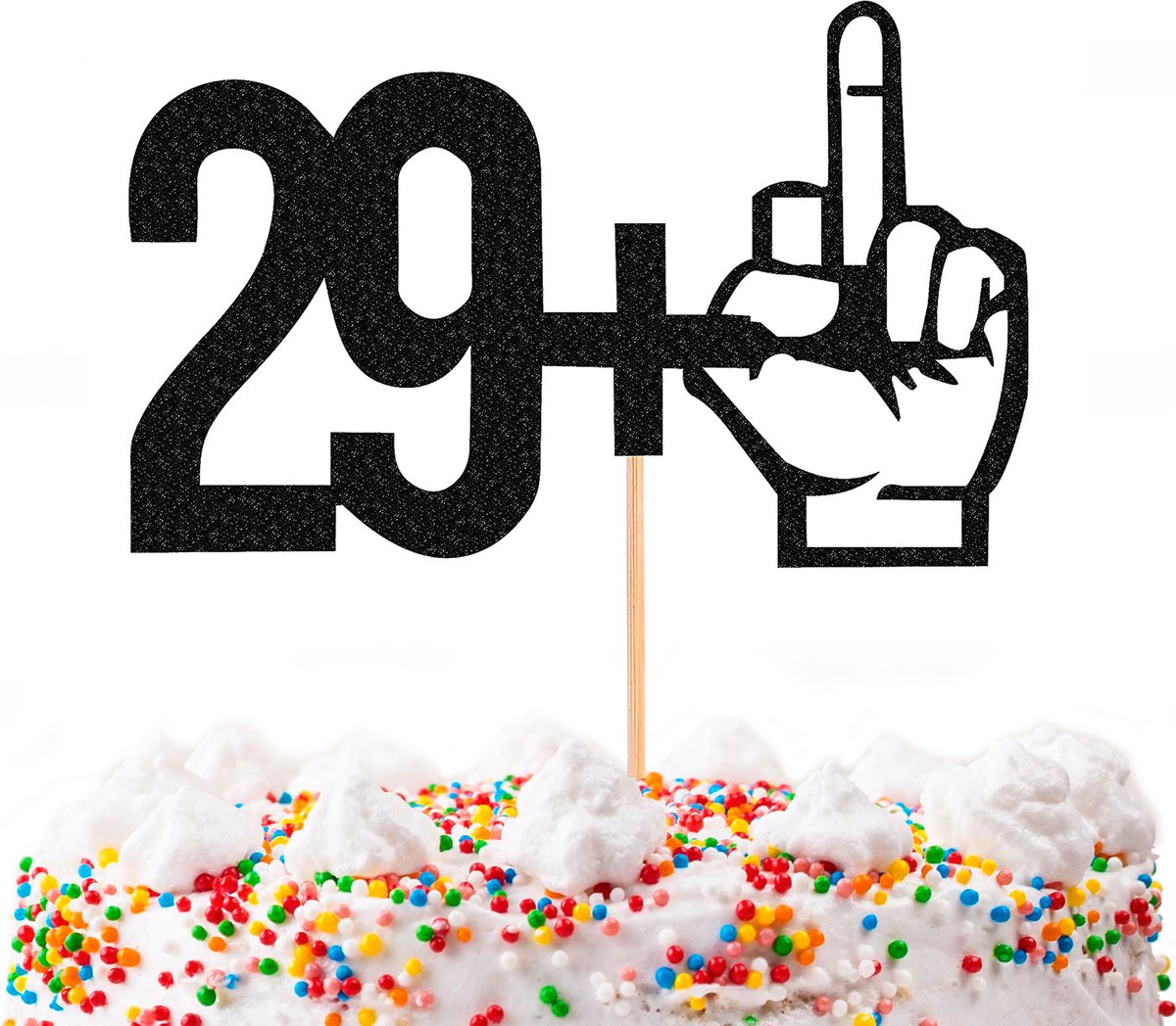 Taarttopper – 18cm – Wit & Zwart – 30 Jaar Verjaardag Versiering – Cake Topper – Middelvinger – Bakken – Taartversiering