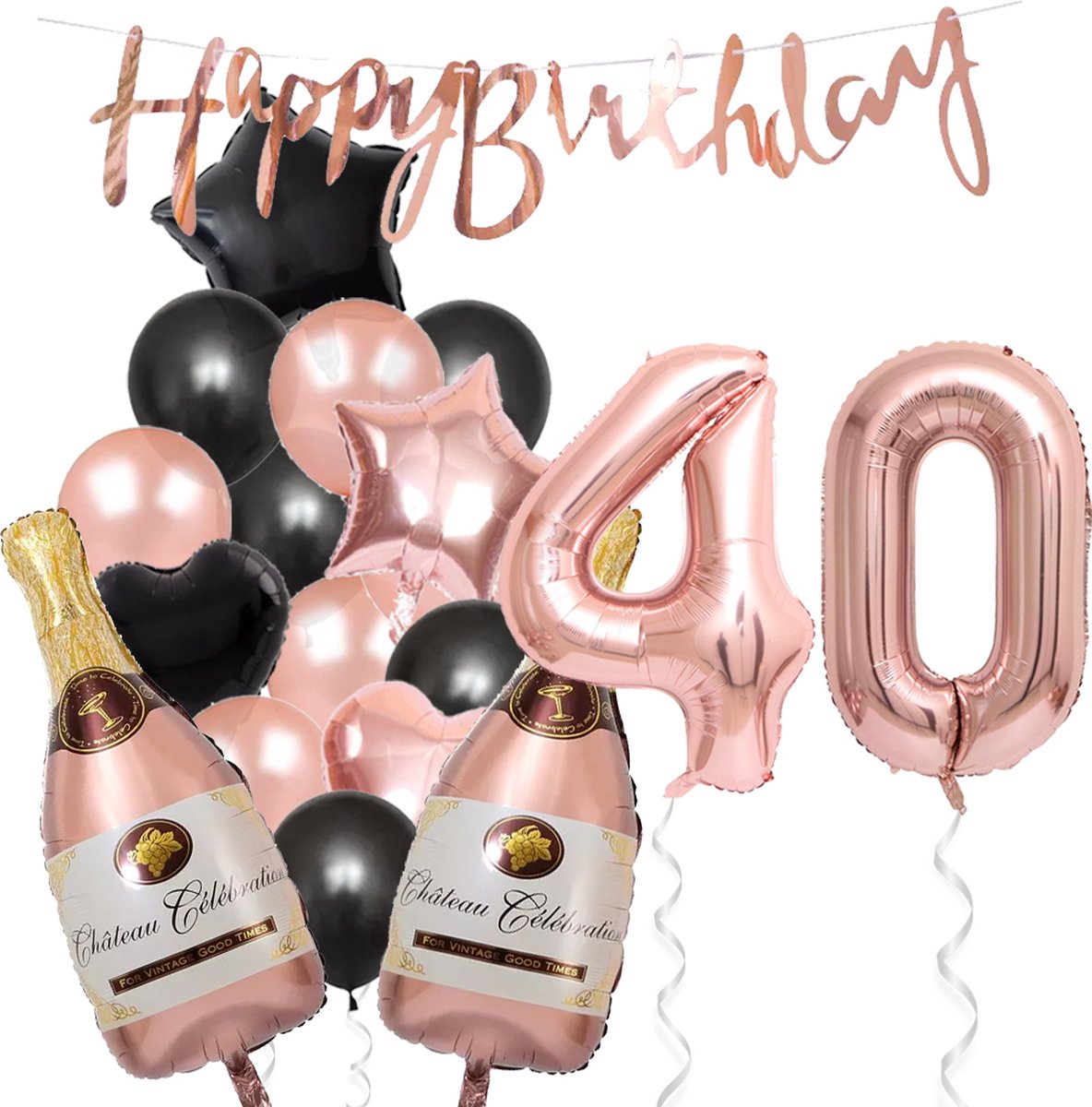 40 Jaar Verjaardag Cijferballon 40 – Feestpakket Snoes Ballonnen Pop The Bottles – Rose Zwart Versiering